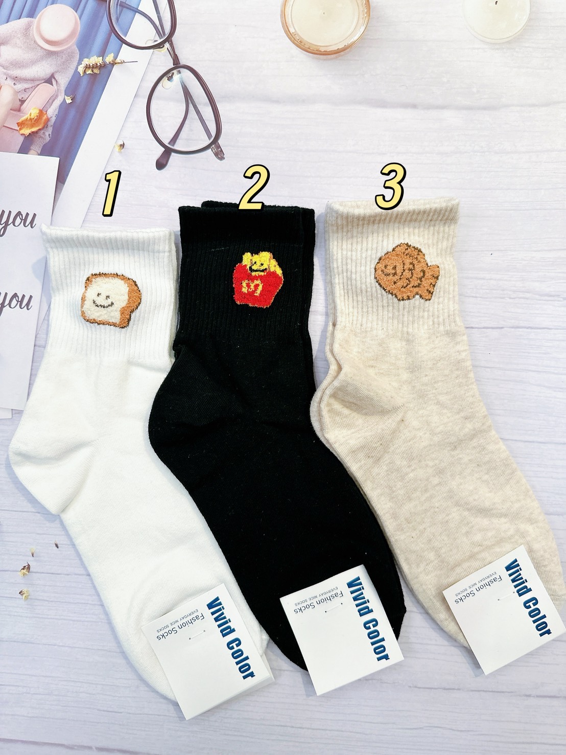 韓國製造~田園風立體浮雕小花 二分之一襪