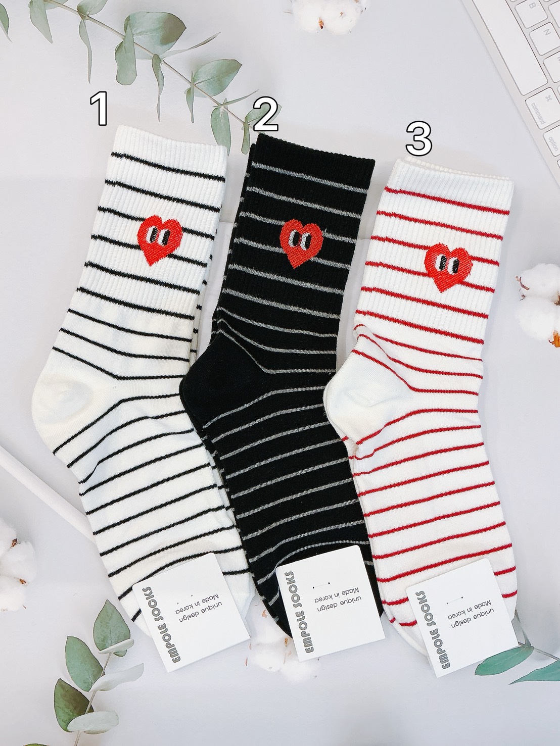 韓國製造~條紋愛心笑臉 二分之一襪