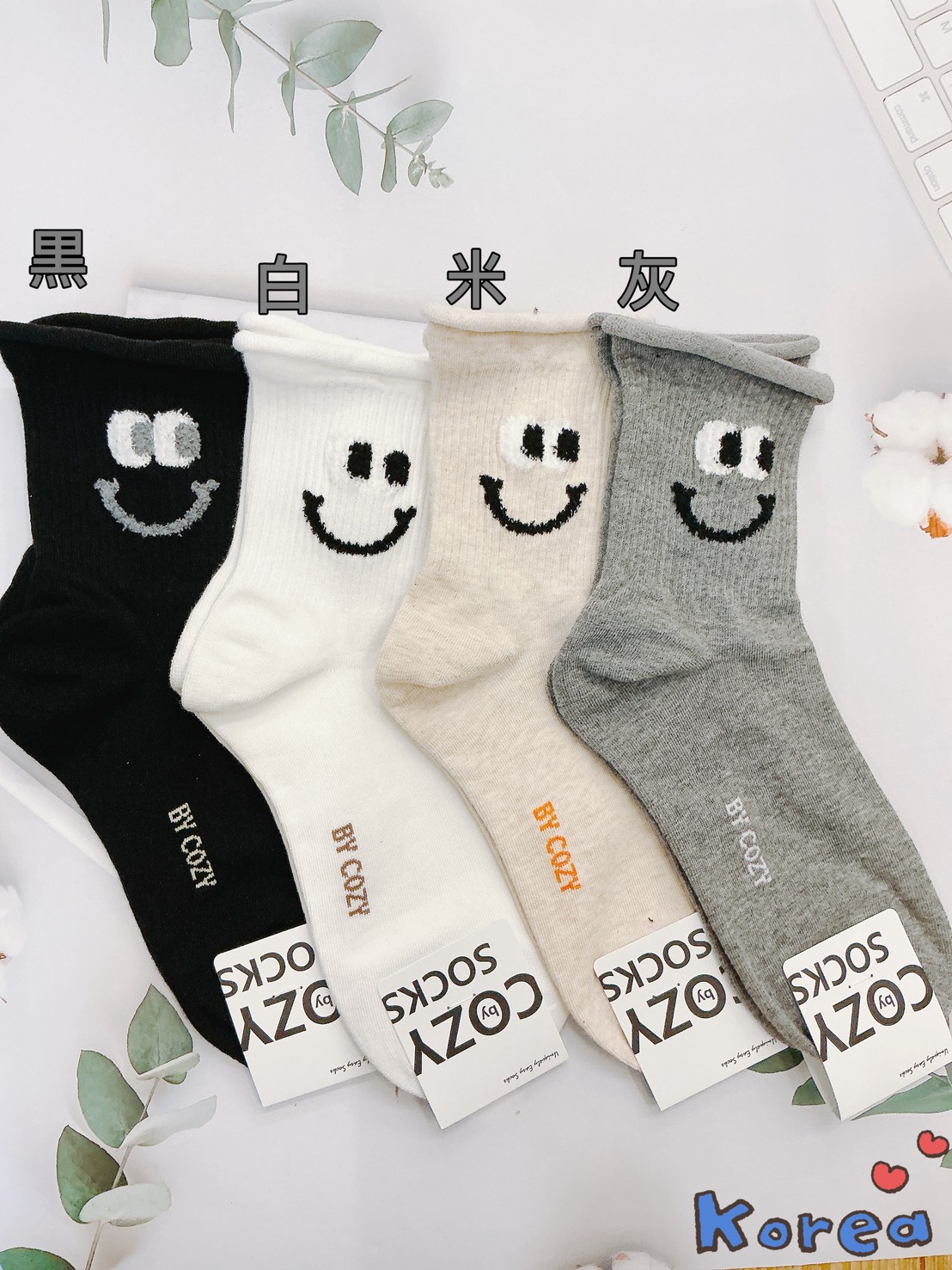 韓國製造~開心笑臉 二分之一襪