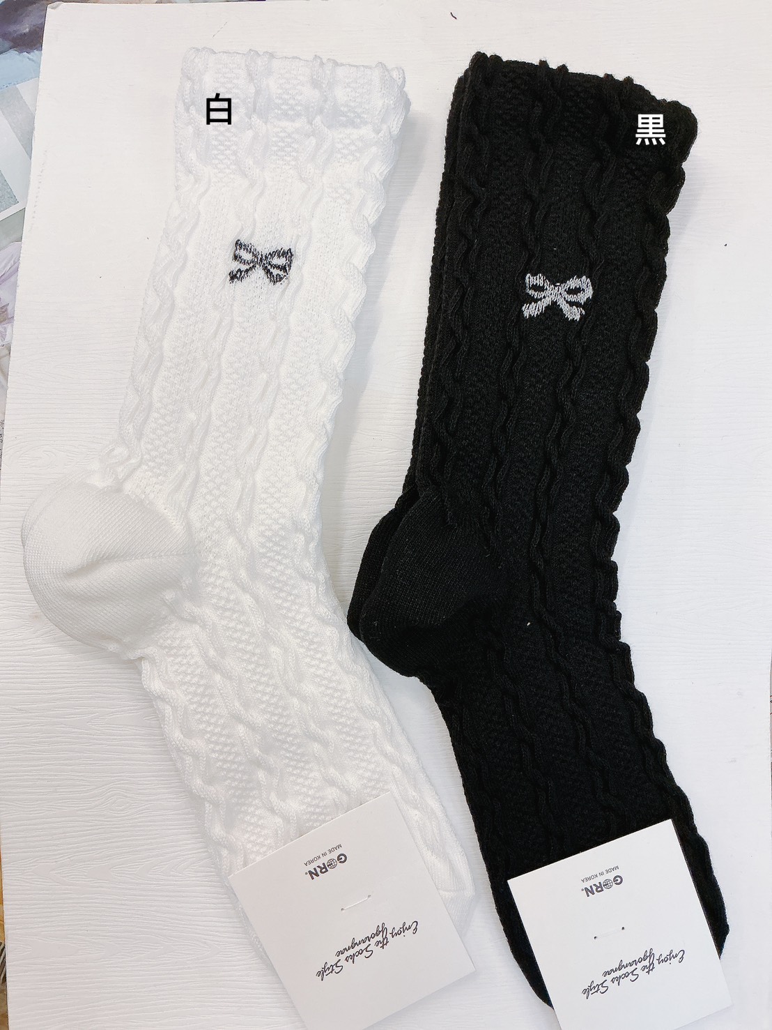 韓國製造~麻花紋蝴蝶結 二分之一襪