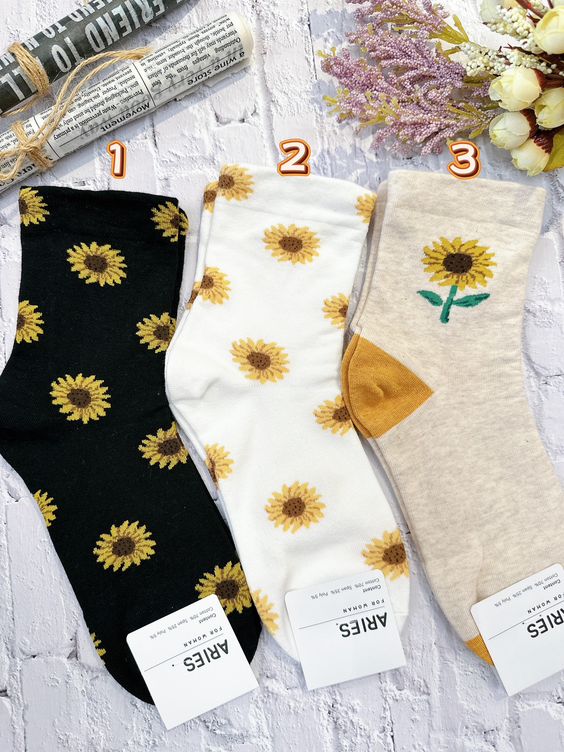 韓國製造~金黃向日葵 二分之一襪