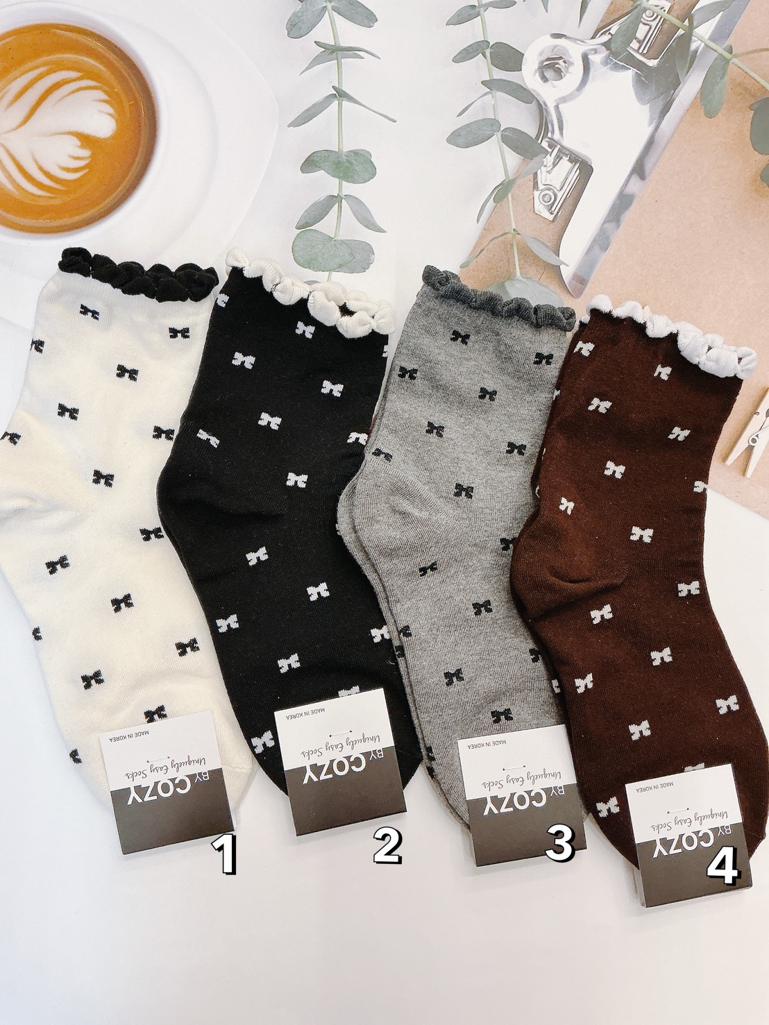 韓國製造~浮雕蝴蝶結 短襪