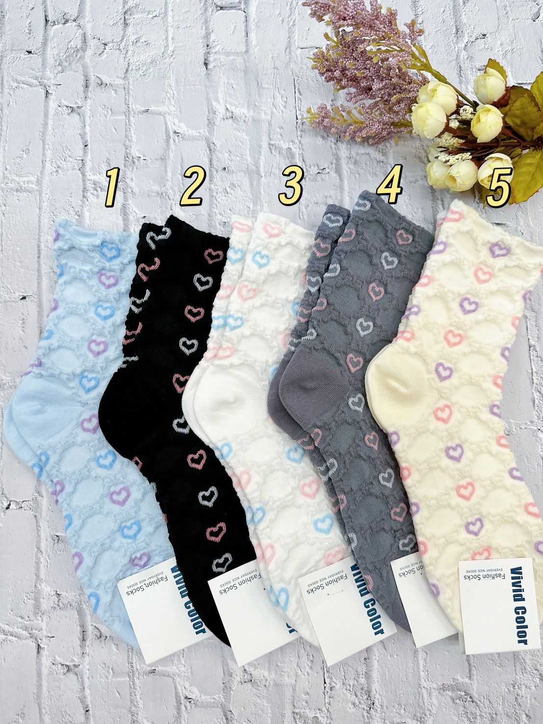 韓國製造~浮雕小碎花 短襪