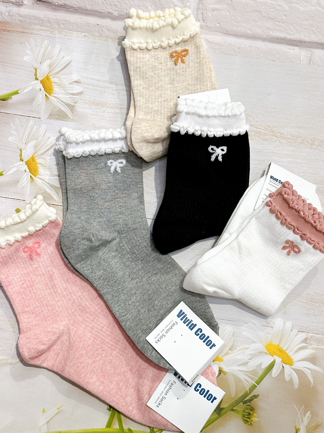 韓國製造~蛋糕邊蝴蝶結 二分之一襪