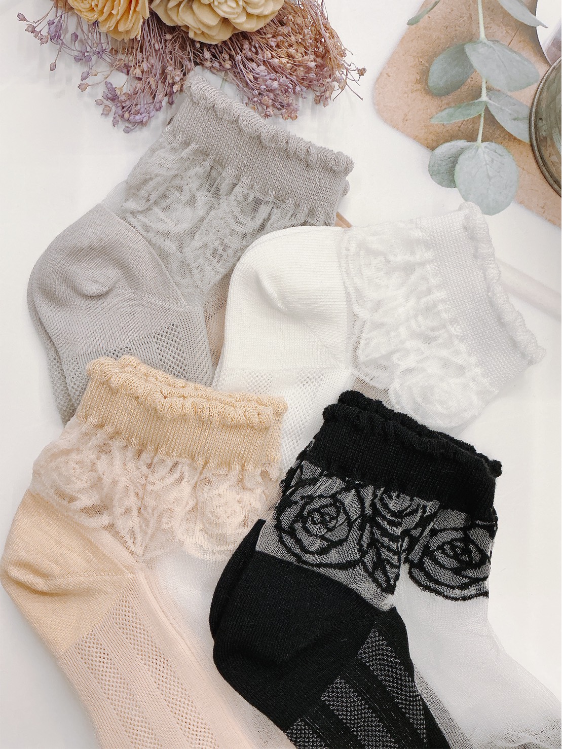 韓國製造~透氣小花 隱形襪