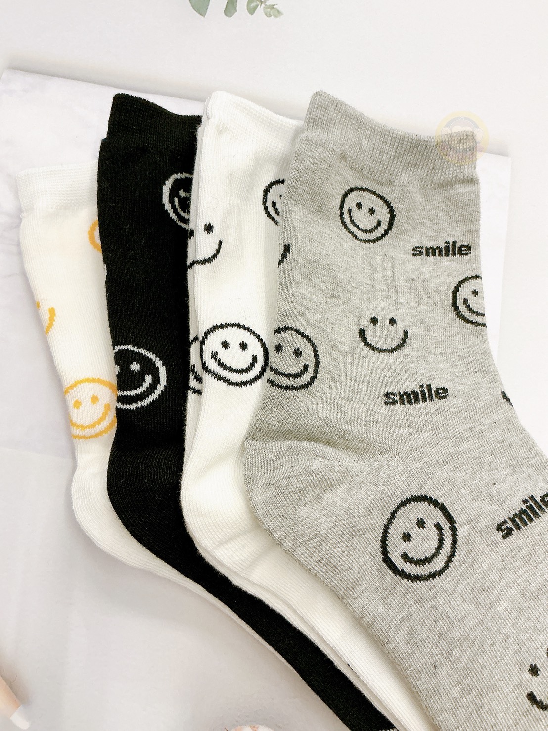 韓國製造~滿版笑臉 二分之一襪