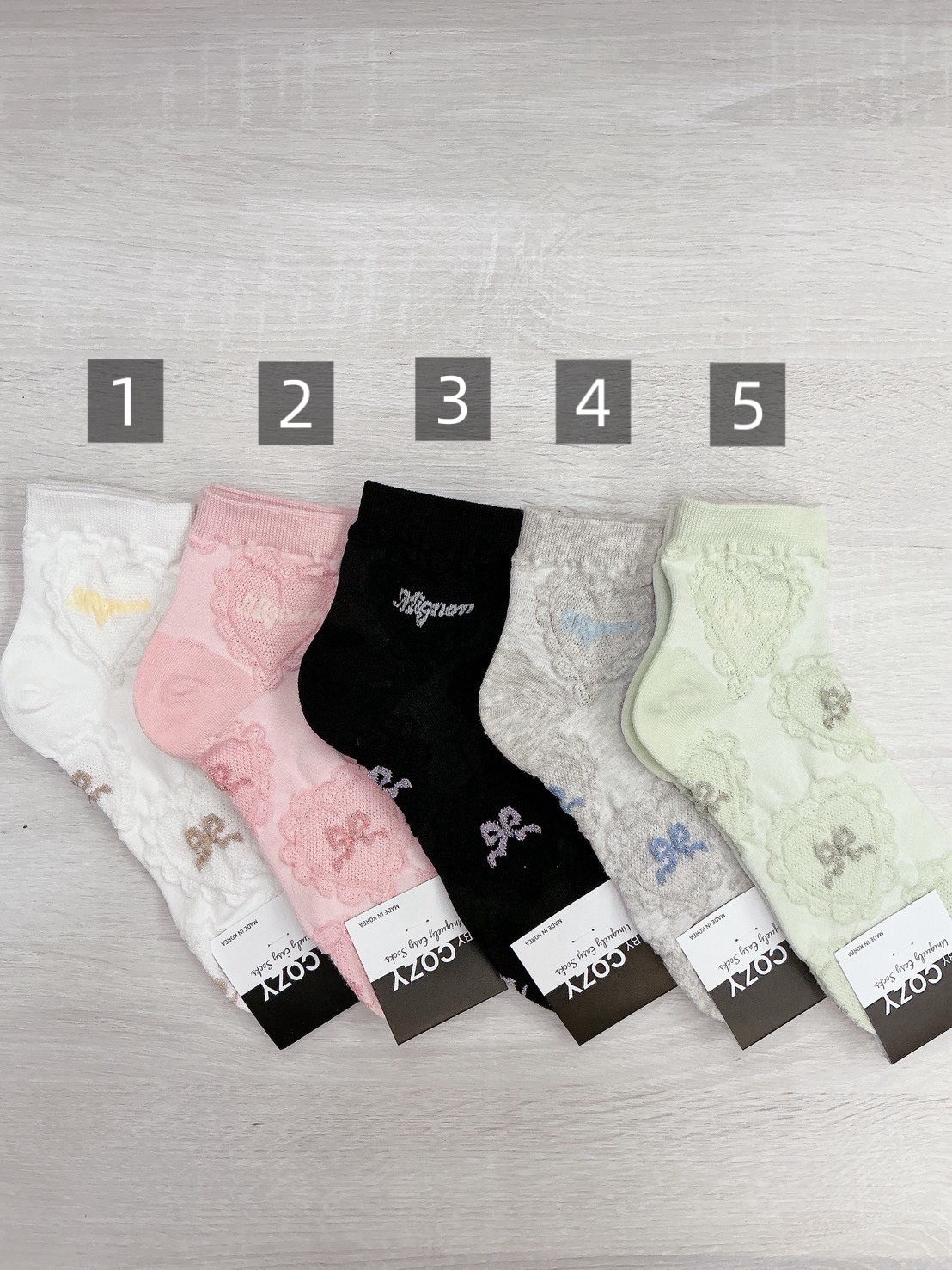 韓國製造~宮廷浮雕蝴蝶結 短襪