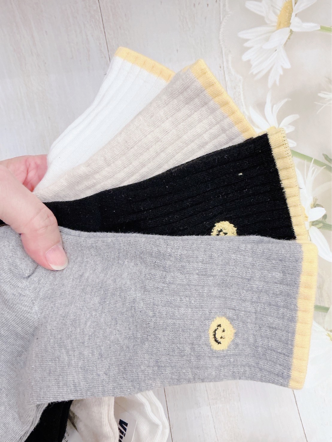 韓國製造~雙色襪頭笑臉 二分之一襪