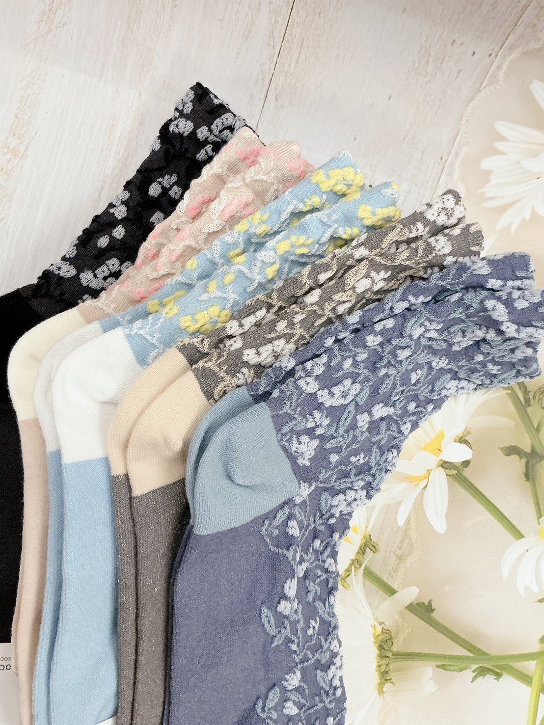 韓國製造~薄款雙色木耳邊 二分之一襪