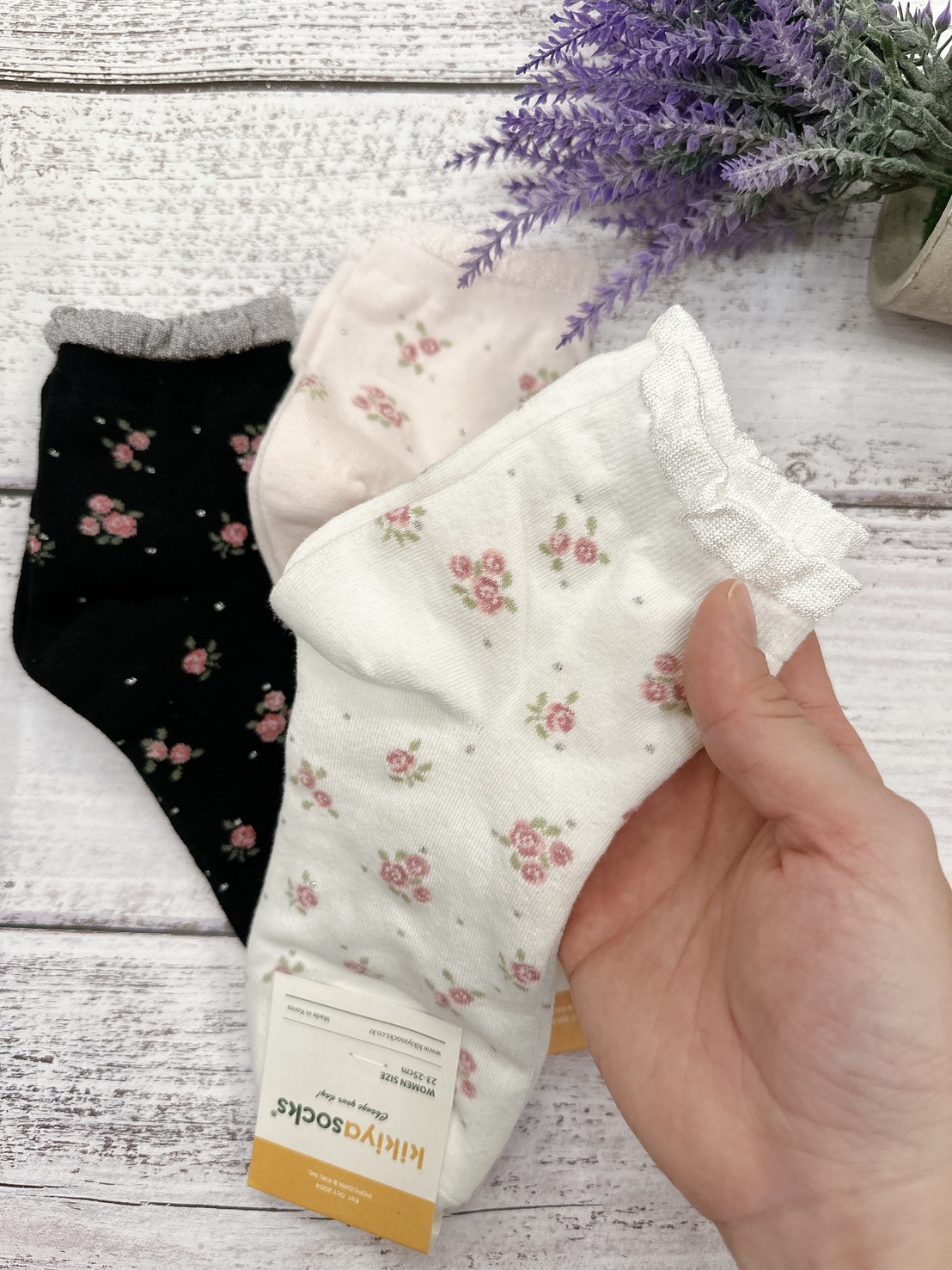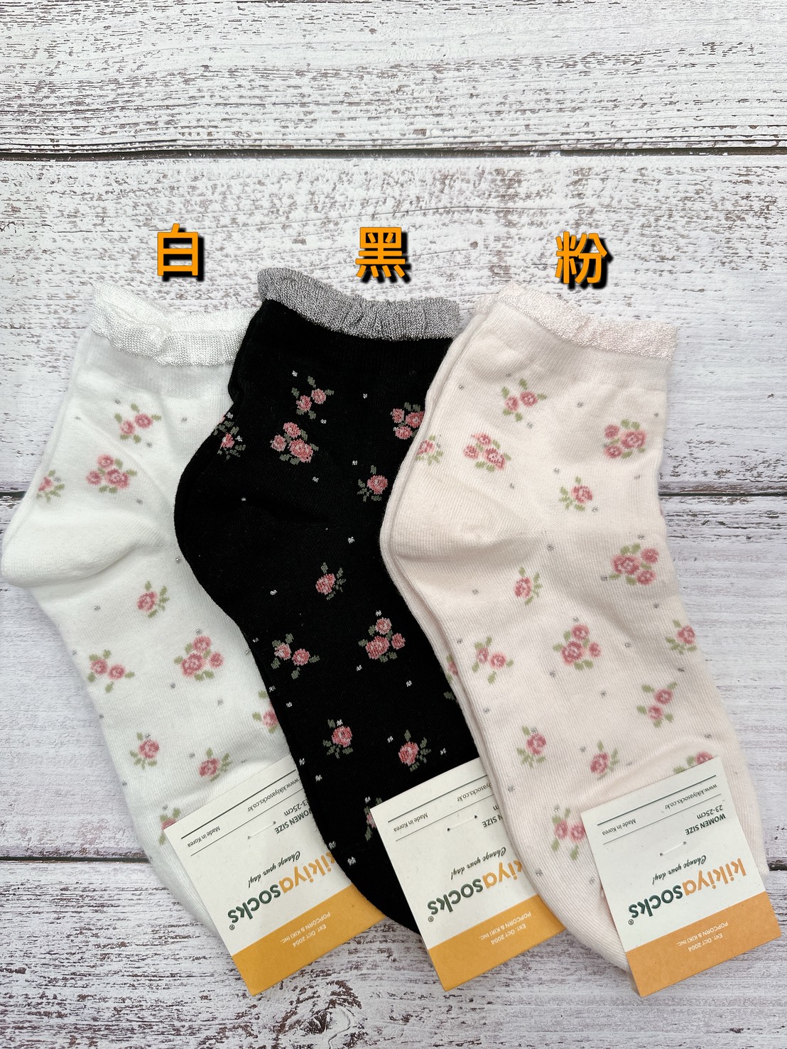 韓國製造~花邊亮亮小點玫瑰 短襪