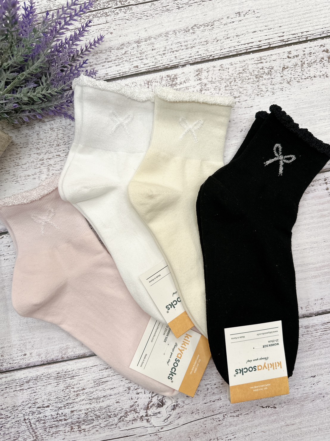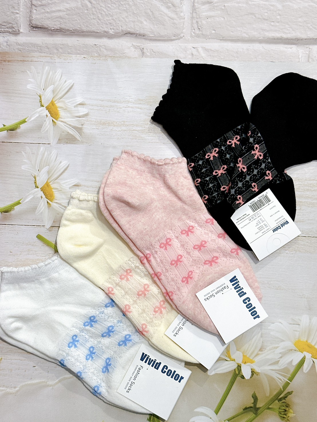 韓國製造~滿版蝴蝶結泡泡邊 二分之一襪