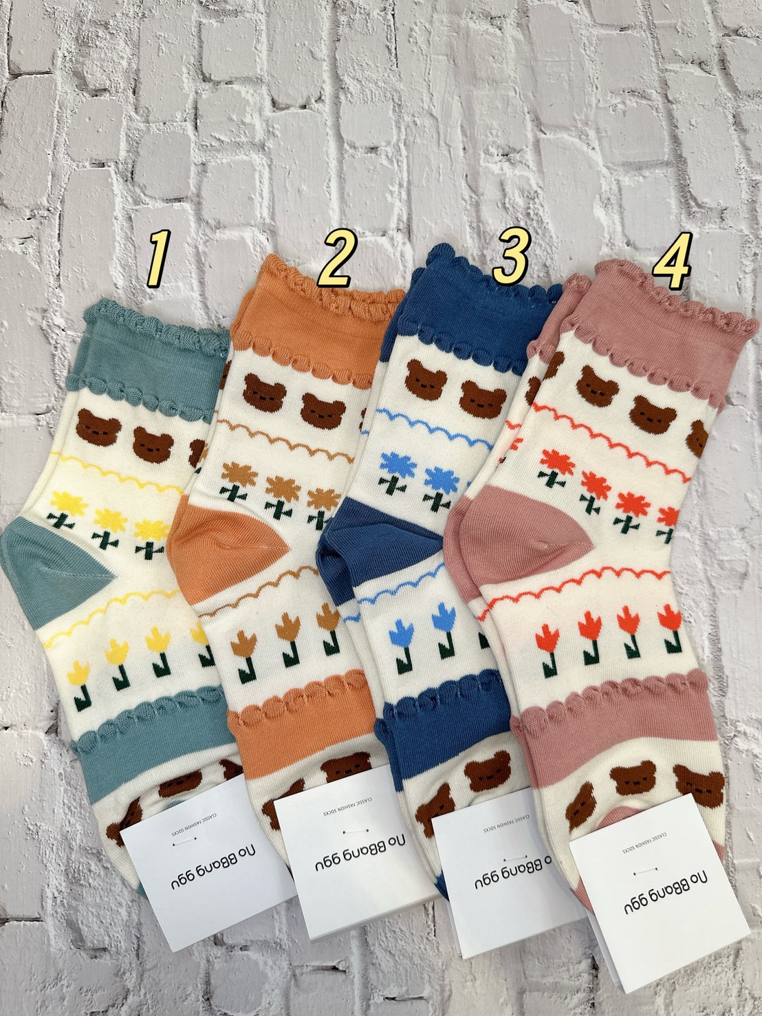 韓國製造~蛋糕荷葉壓痕蝴蝶結 短襪