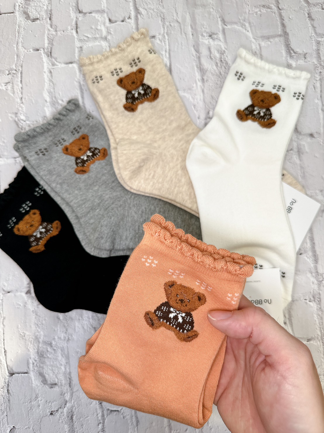 韓國製造~花邊泰迪熊 二分之一襪