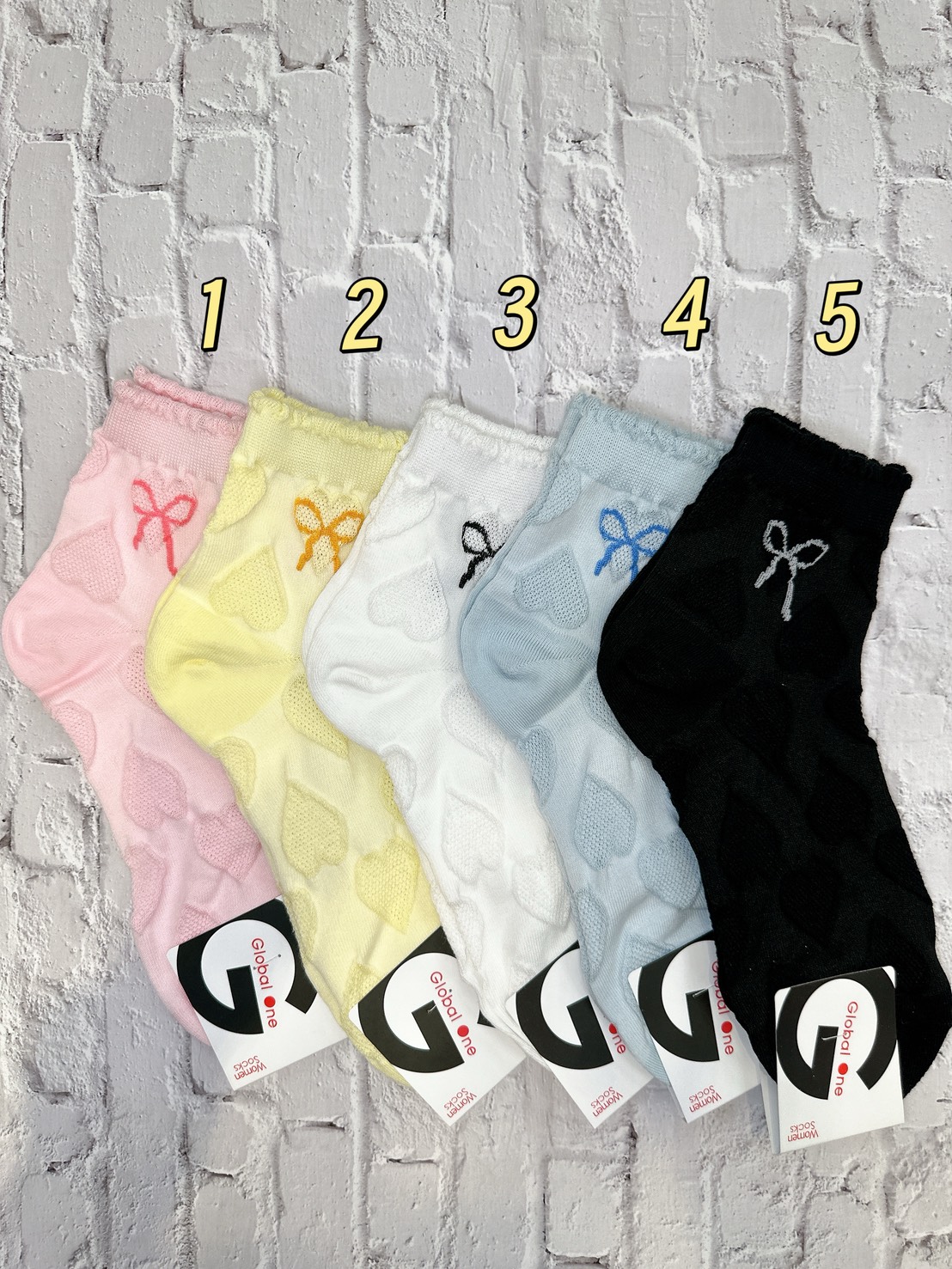 韓國製造~花邊蝴蝶結微浮愛心 二分之一襪
