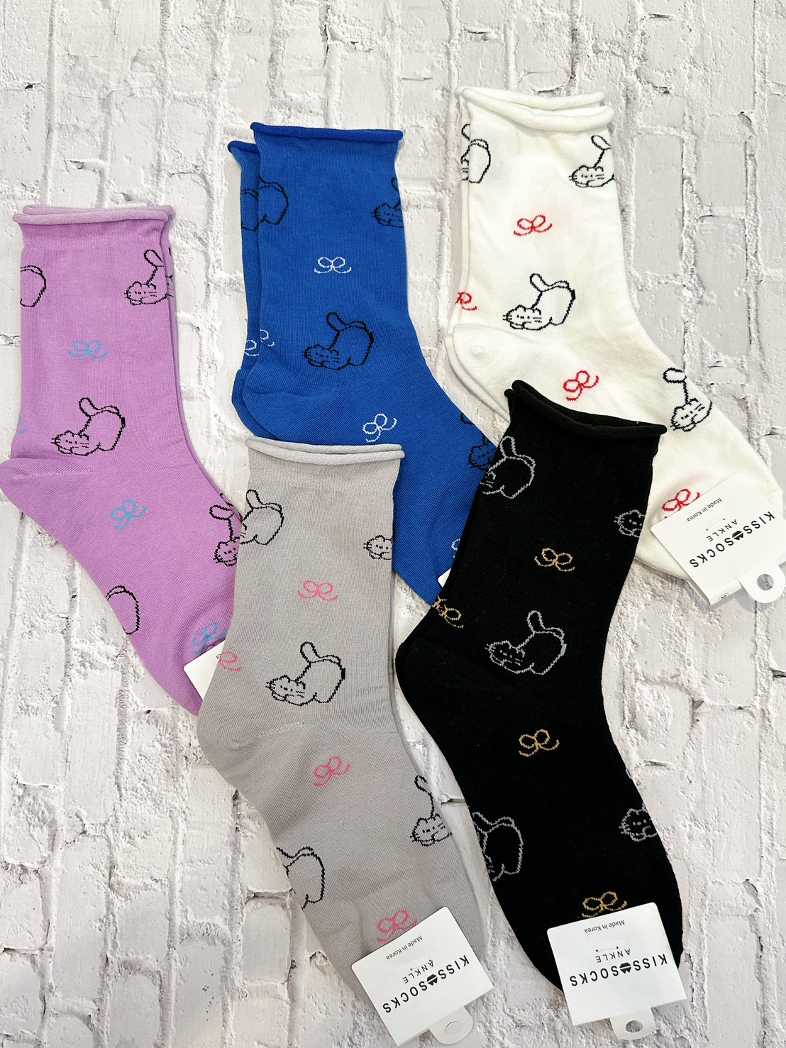 韓國製造~畫鴉蝴蝶結 二分之一襪