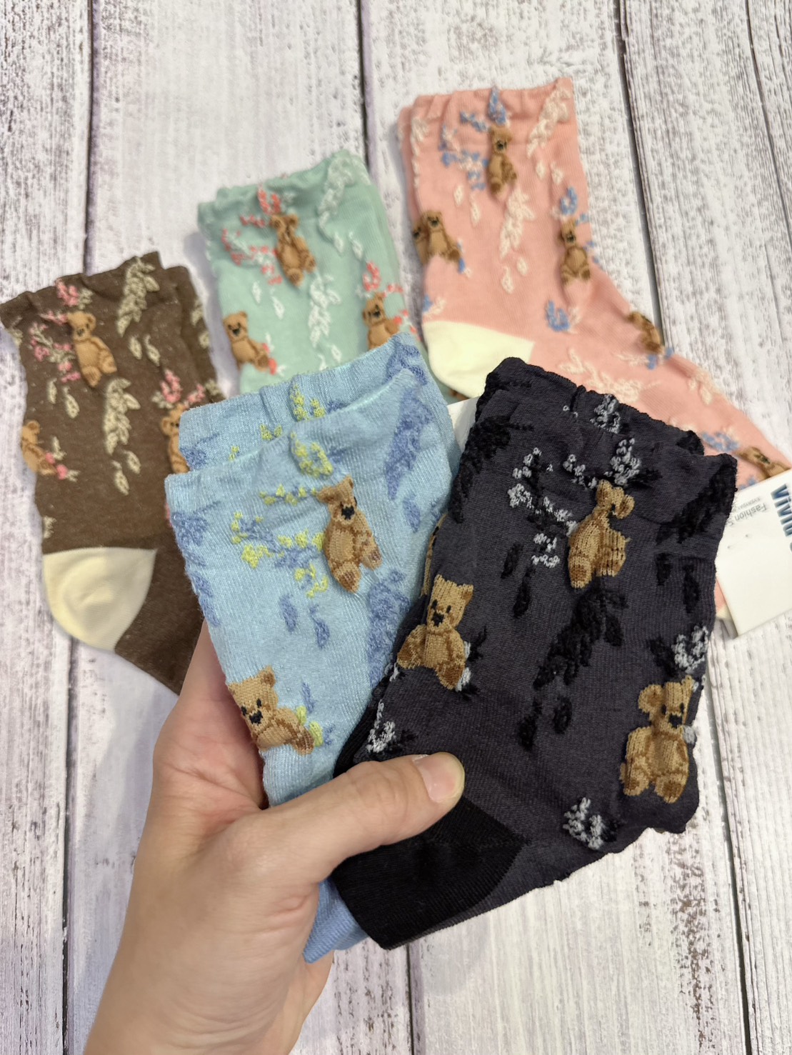 韓國製造~立體小熊藤花 二分之一襪