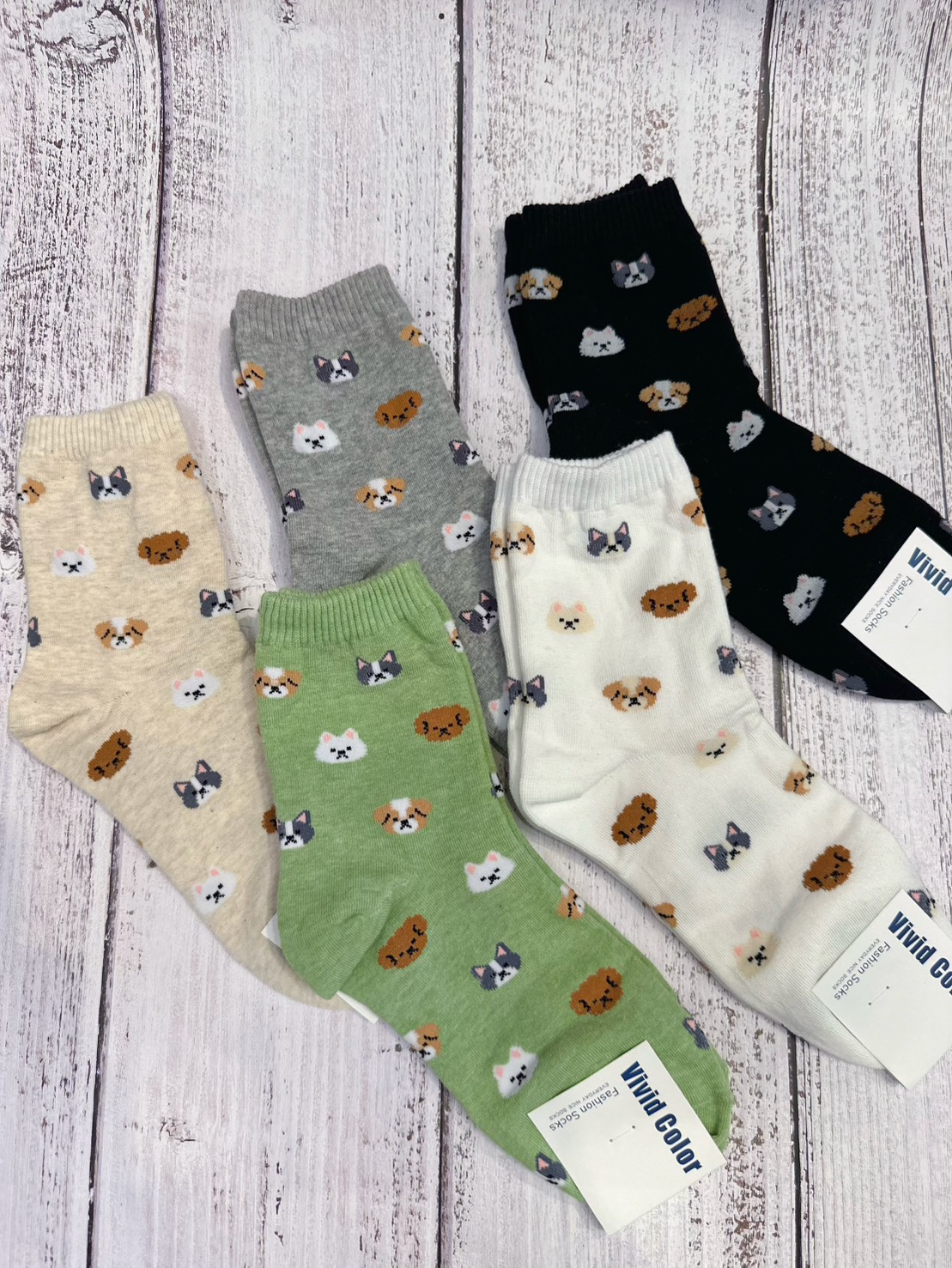 韓國製造~可愛毛絨狗狗 二分之一襪