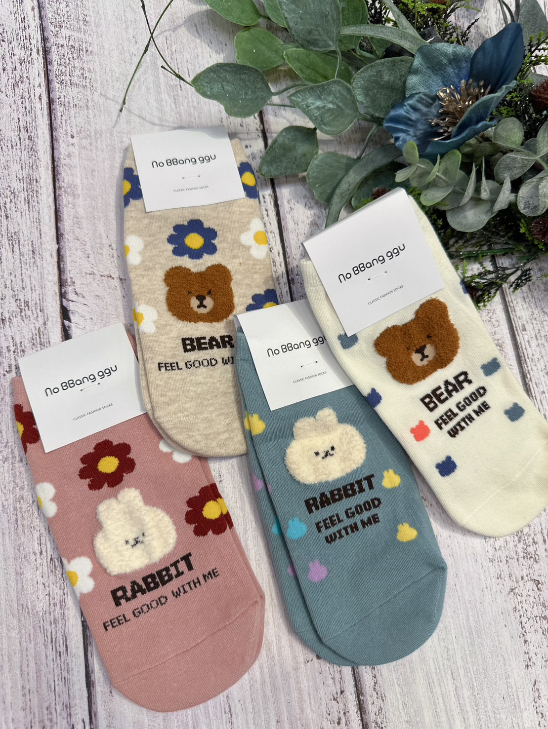 韓國製造~畫鴉蝴蝶結 二分之一襪