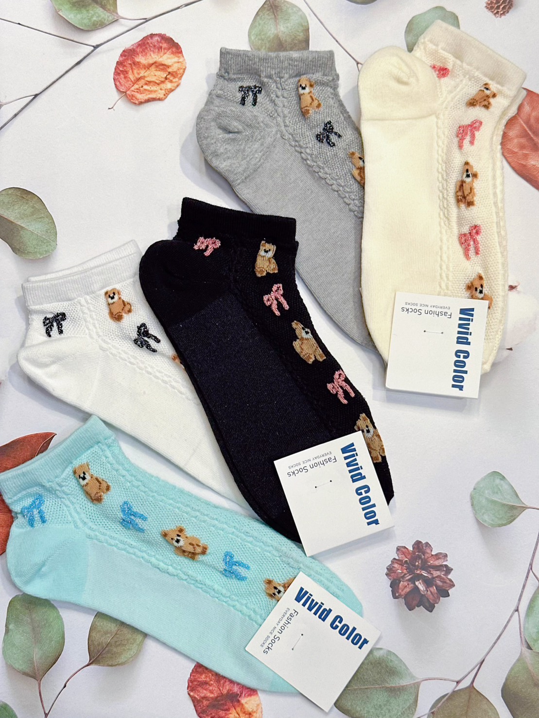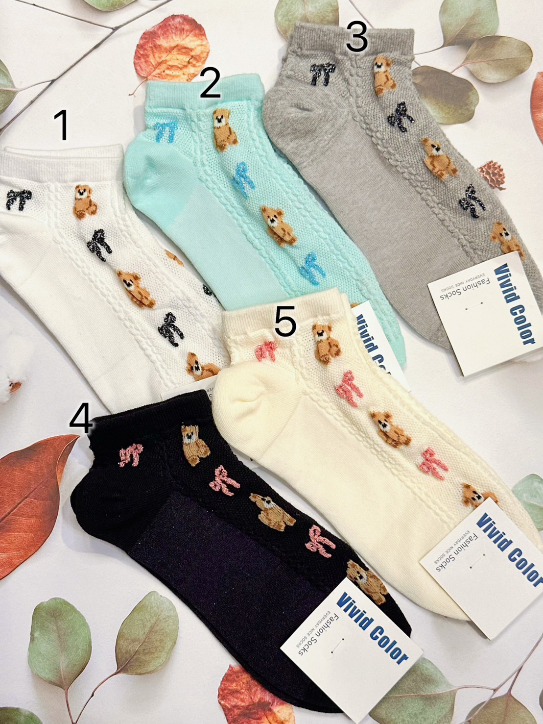 韓國製造~立體蝴蝶結熊 短襪