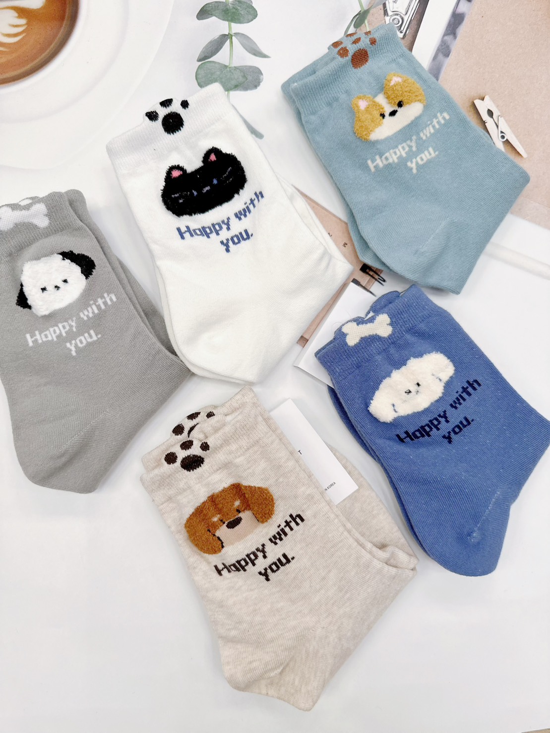 韓國製造~可愛小狗 二分之一襪
