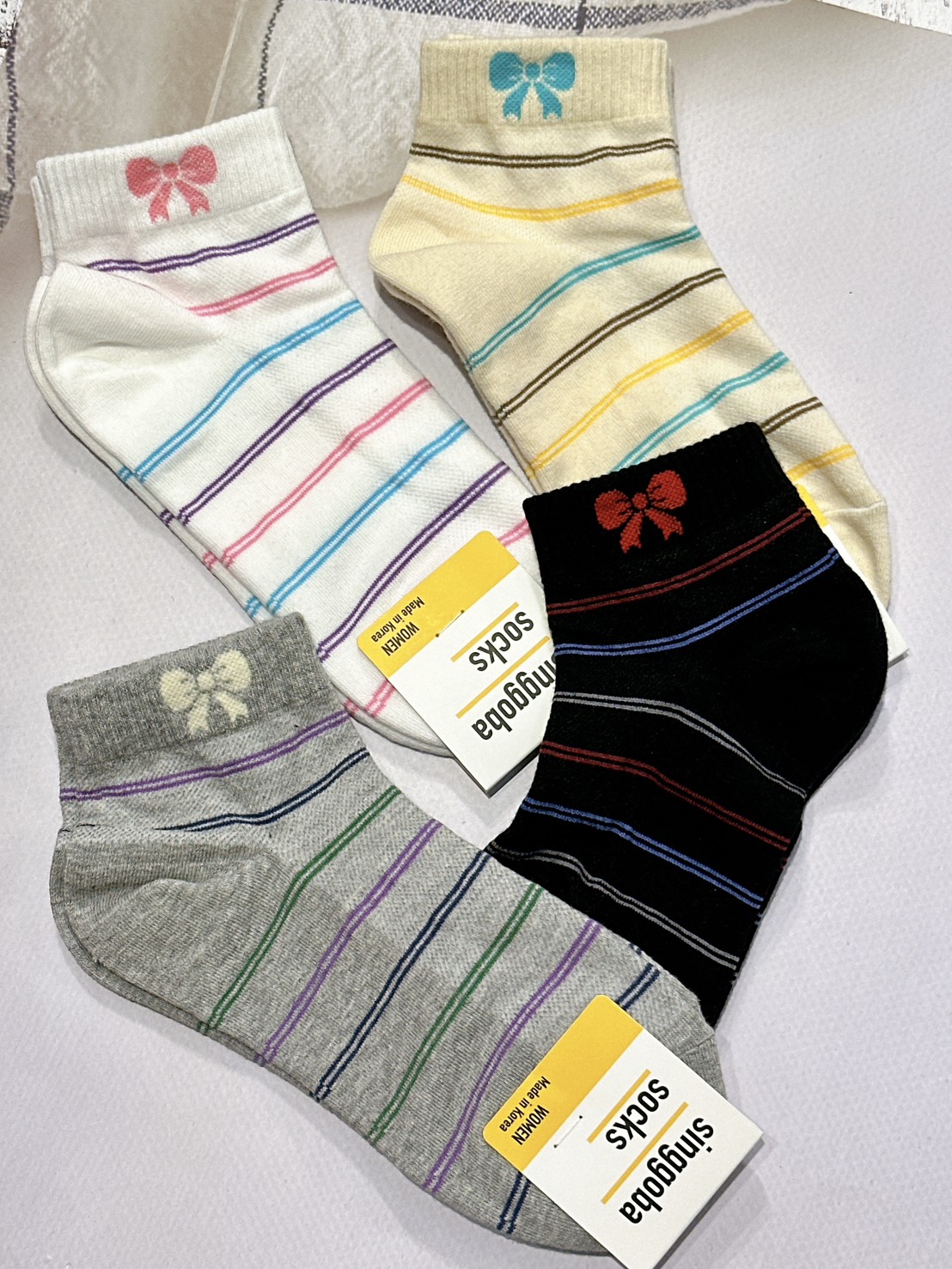 韓國製造~透氣滿版蝴蝶結 二分之一襪