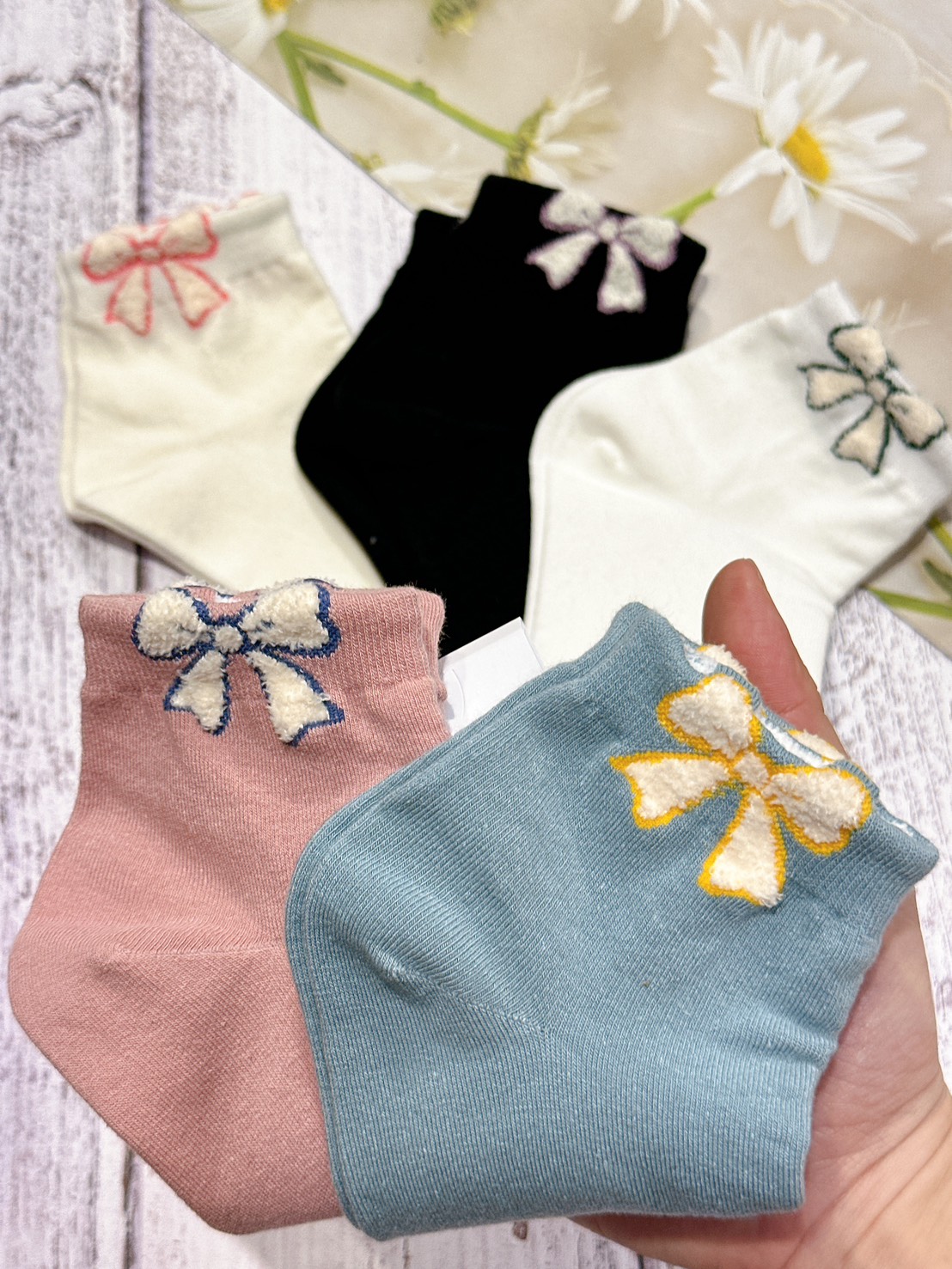 韓國製造~滾邊滿版蝴蝶結 短襪