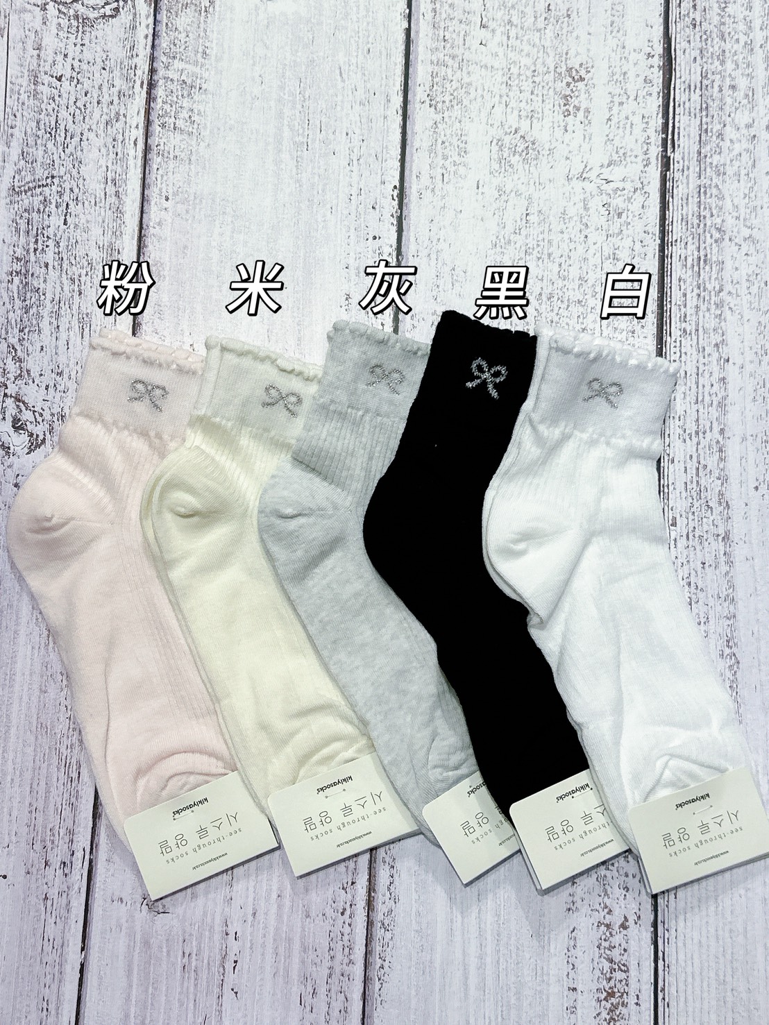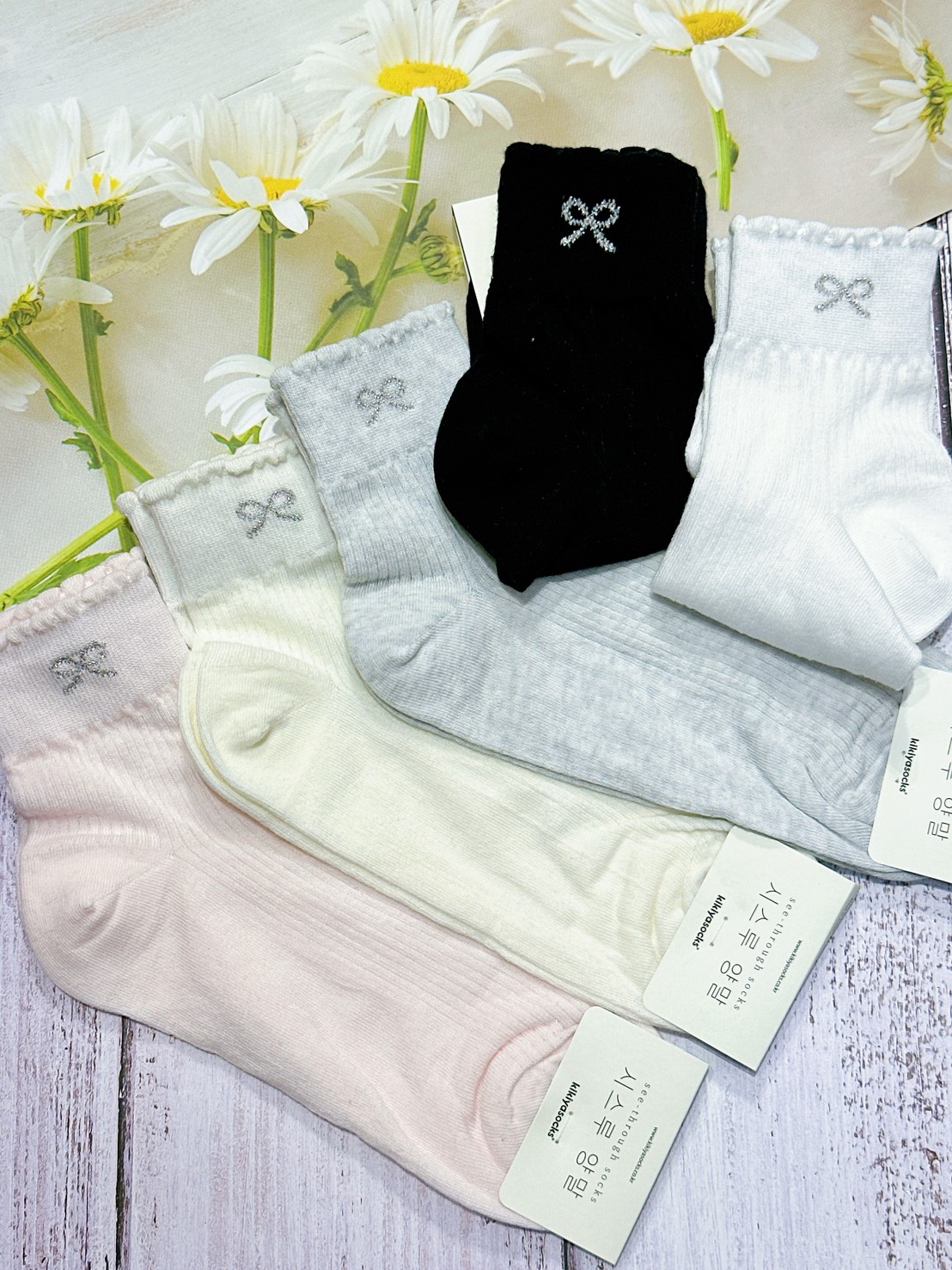 韓國製造~邊壓條蝴蝶結 二分之一襪