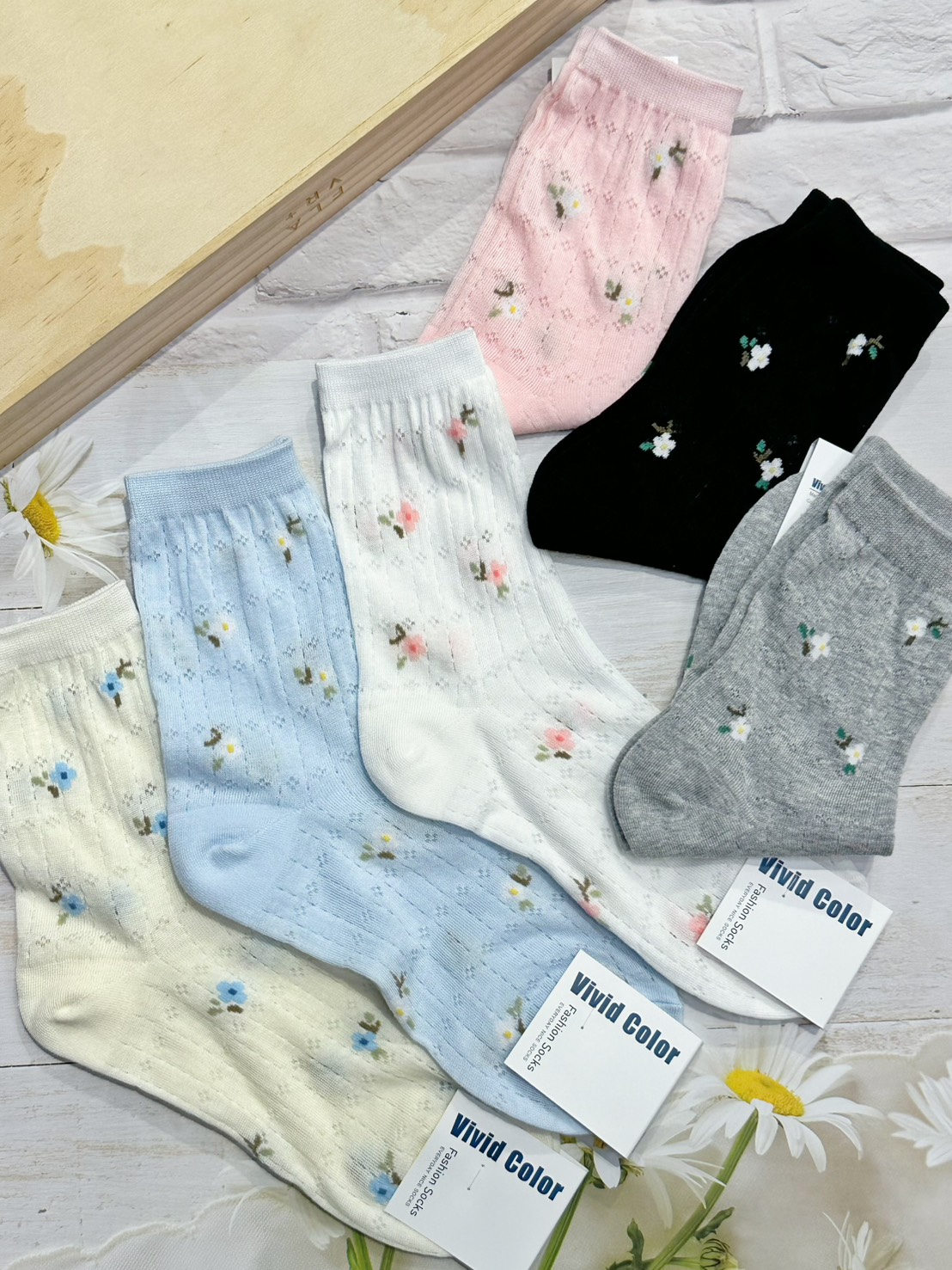 韓國製造~點點小雛菊 二分之一襪