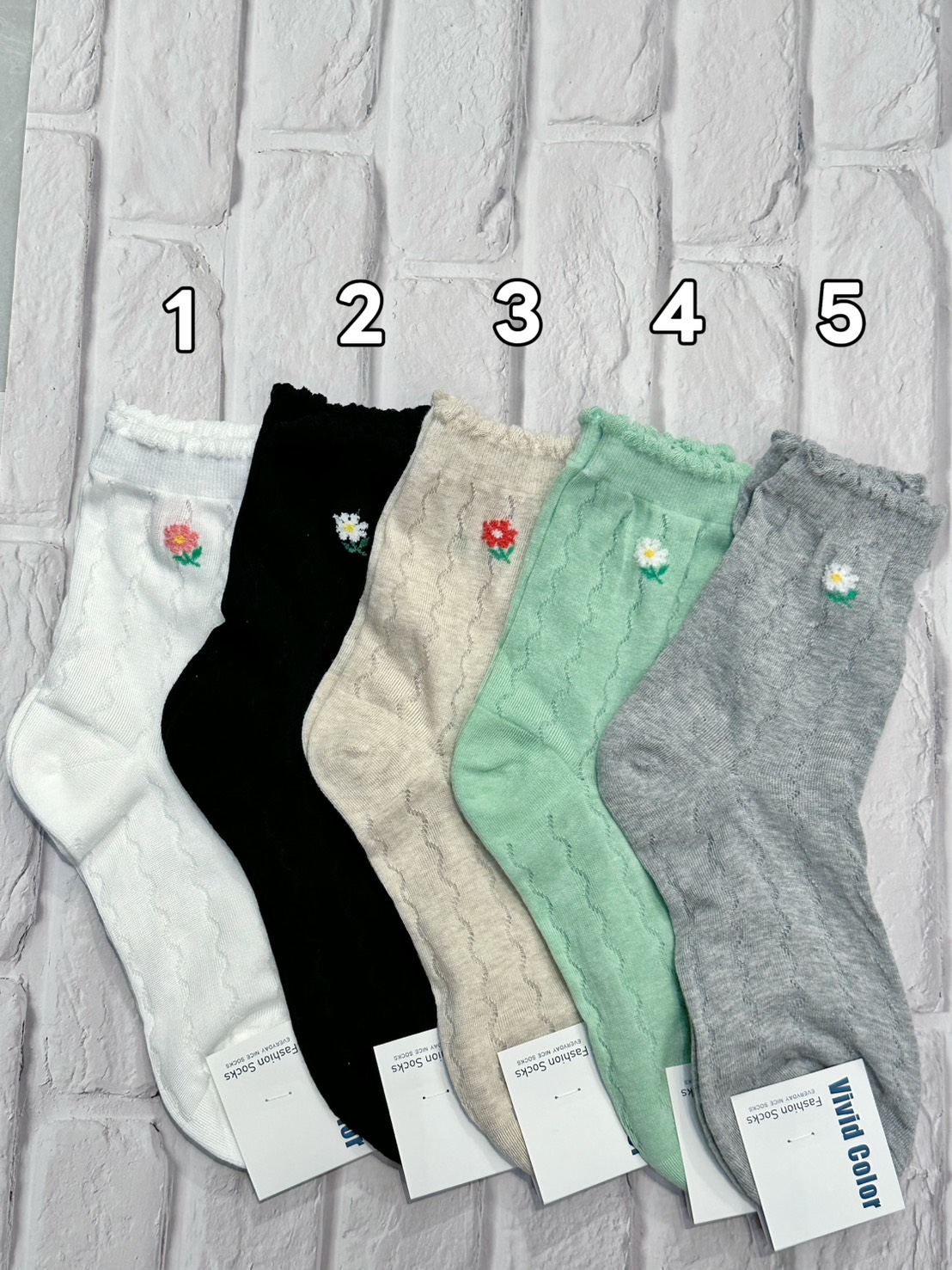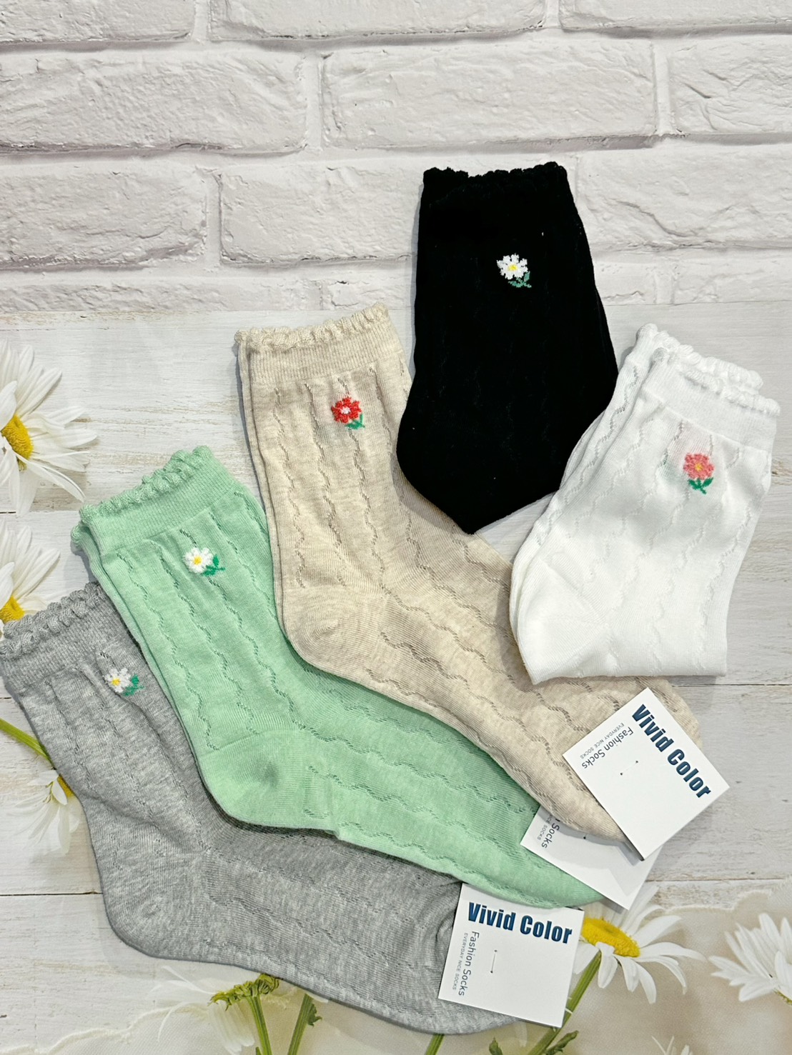 韓國製造~薄款花邊小花透氣 二分之一襪