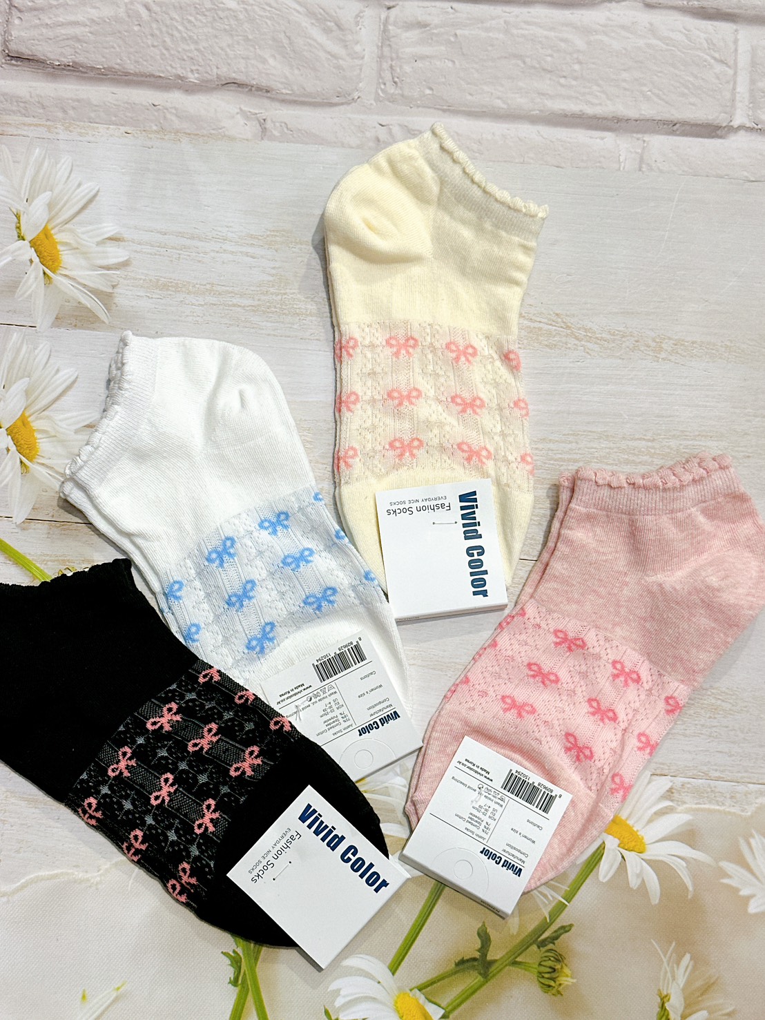 韓國製造~禮物蝴蝶結 二分之一襪