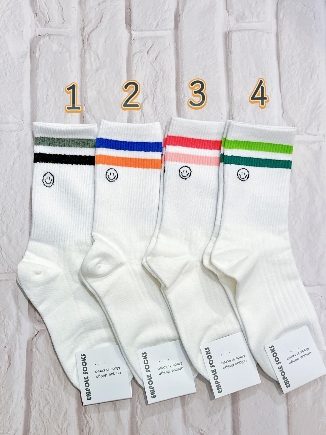 韓國製造~襪口滾色小蝴蝶結 二分之一襪