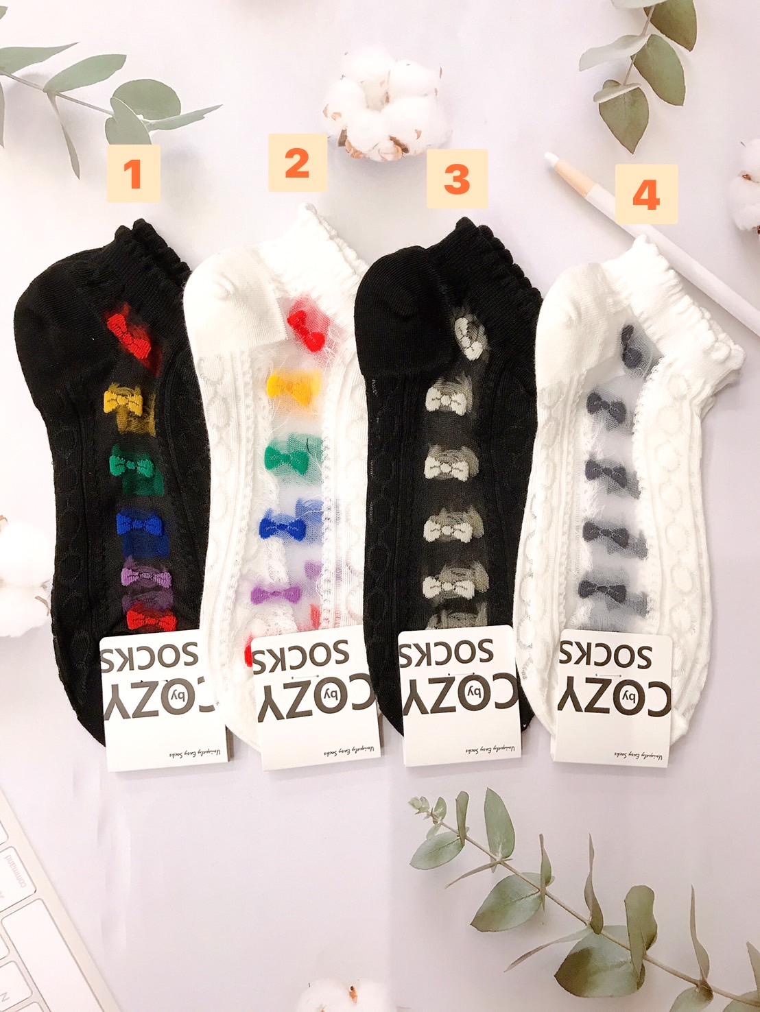 韓國製造~膚排列彩色蝴蝶結 短襪