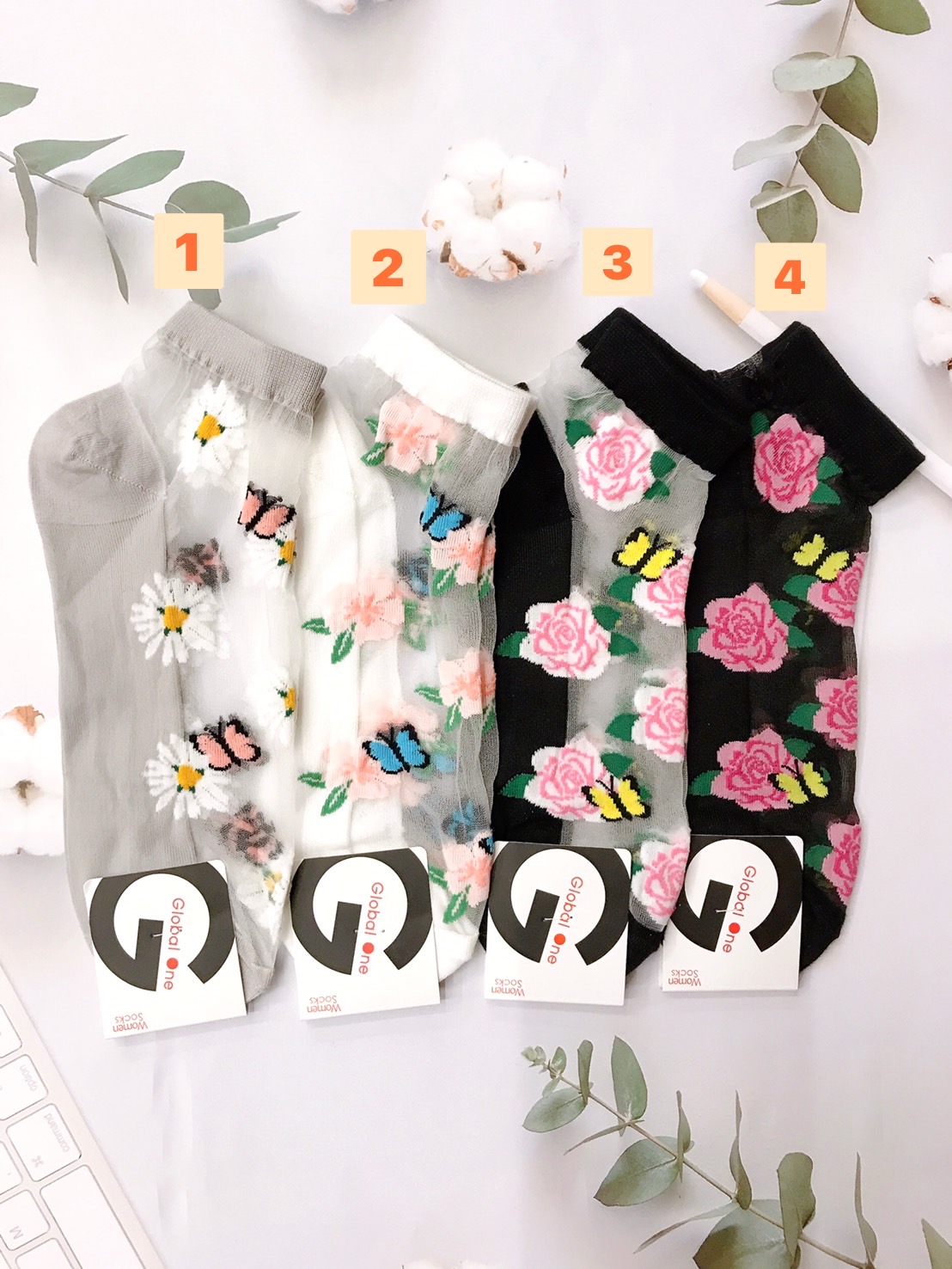 韓國製造~花蝴蝶 二分之一襪