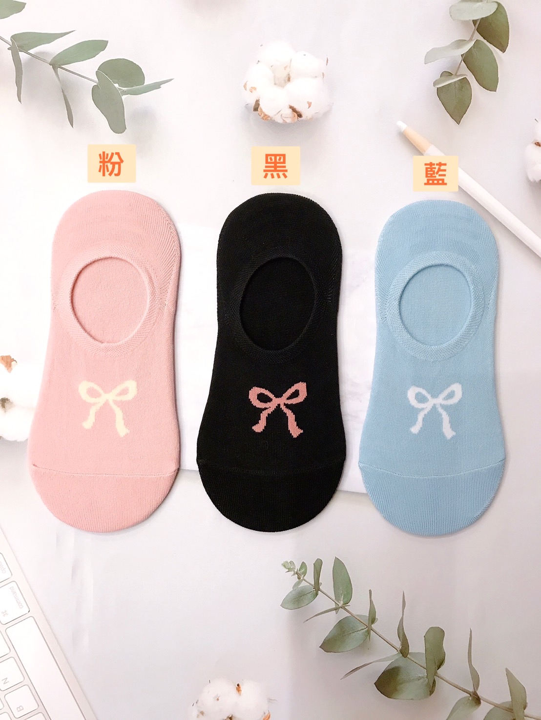 韓國製造~素面蝴蝶結 隱形襪