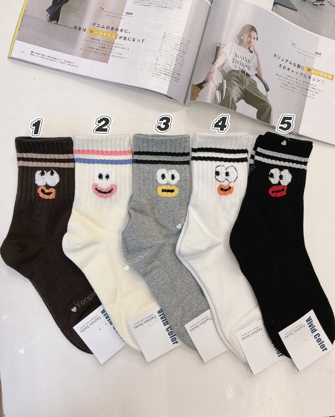 韓國製造~大眼睛口紅嘴巴 二分之一襪