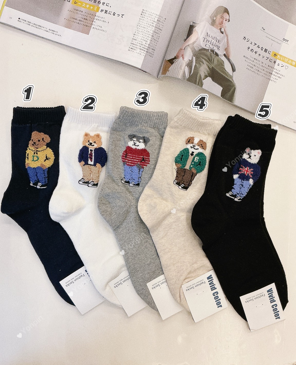 韓國製造~大泰迪穿衣熊 二分之一襪