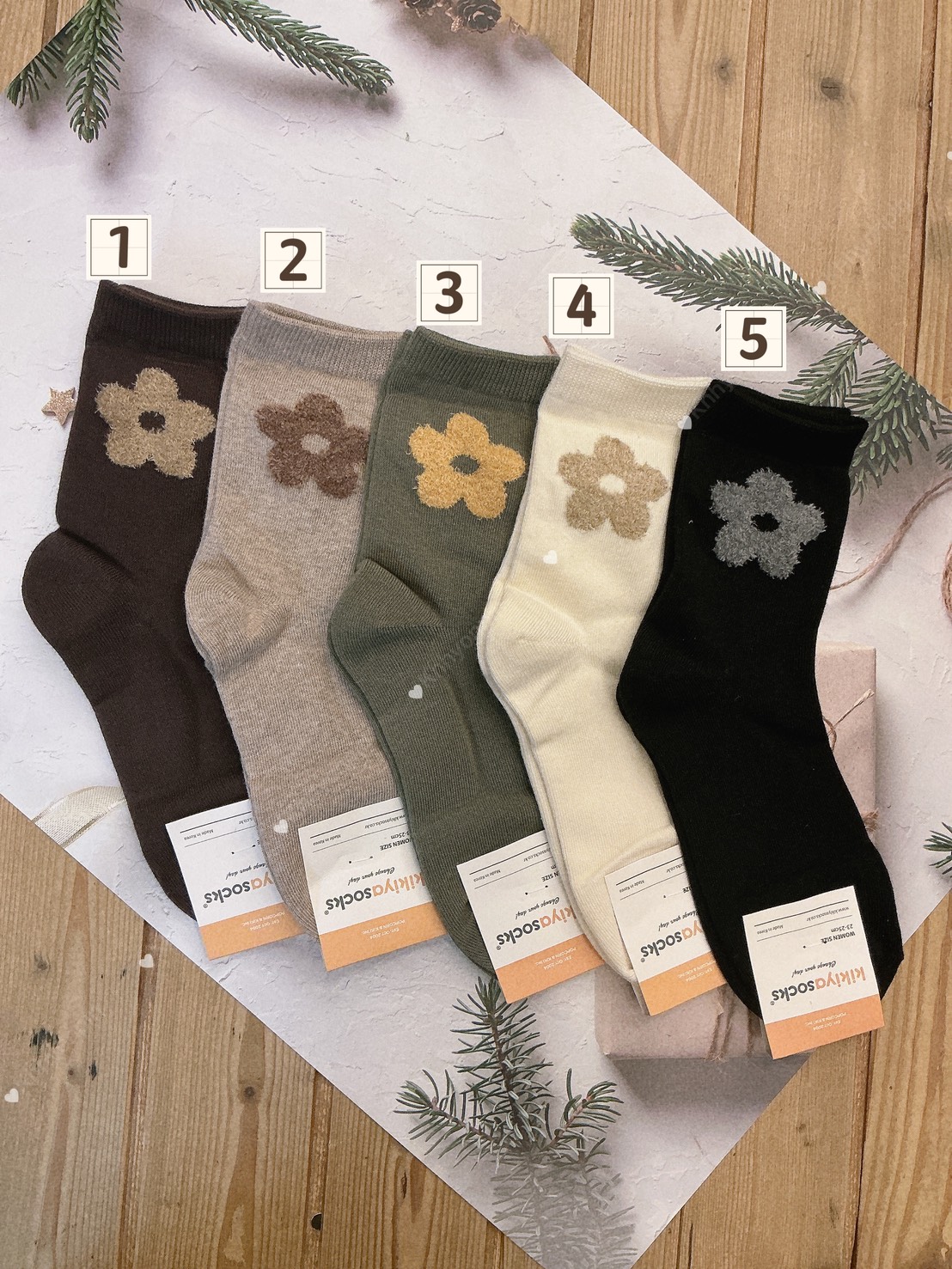 韓國製造~毛絨大動物頭小花 二分之一襪
