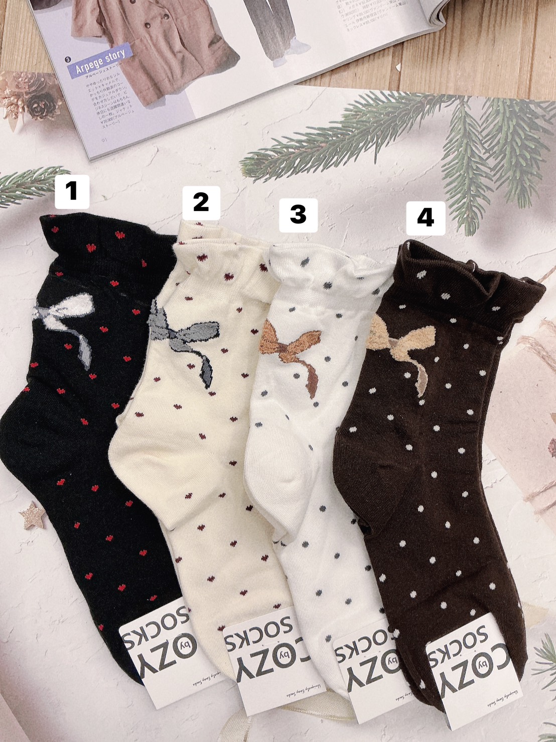 韓國製造~圓點蝴蝶結 二分之一襪