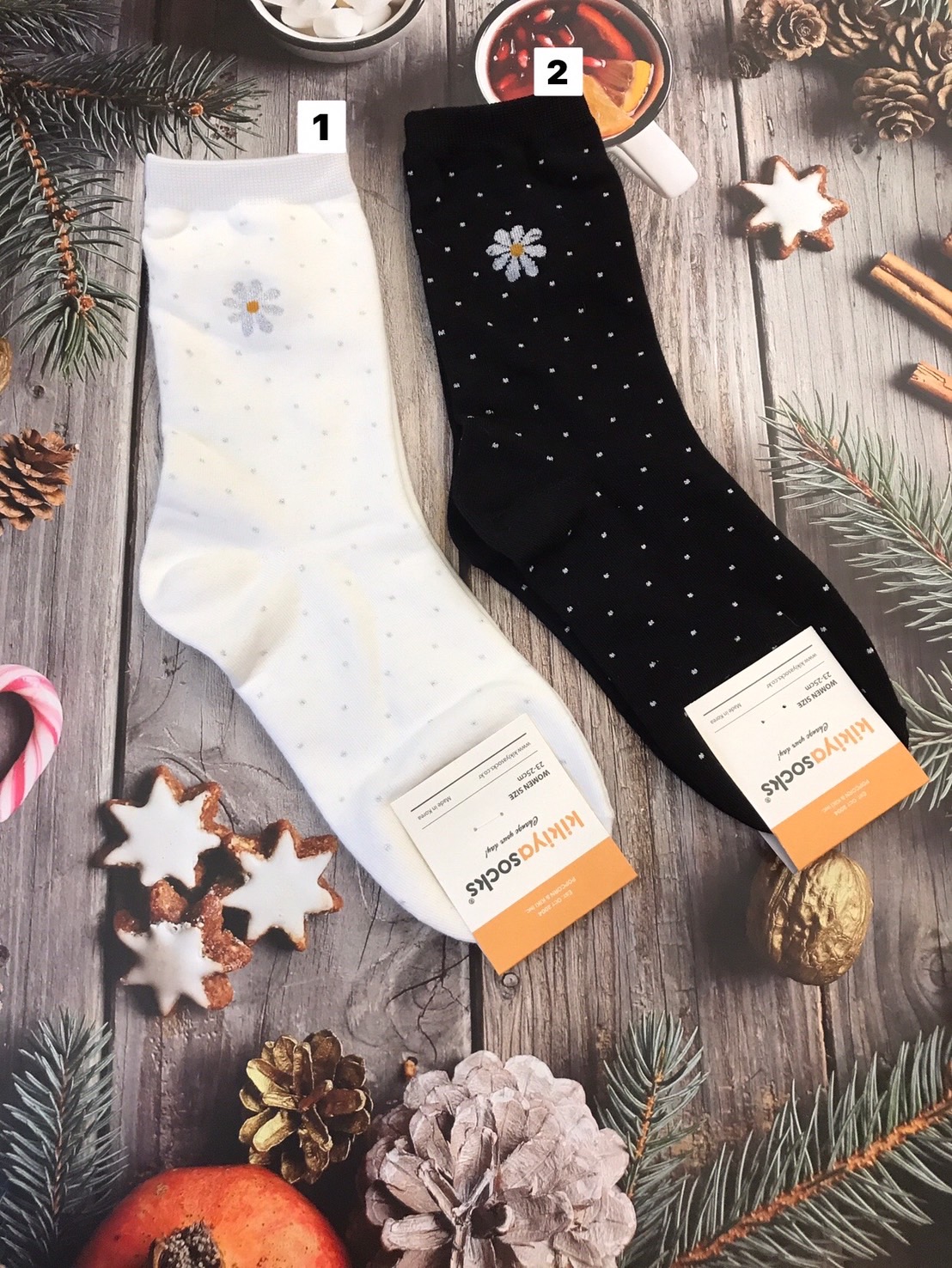 韓國製造~點點小雛菊 二分之一襪
