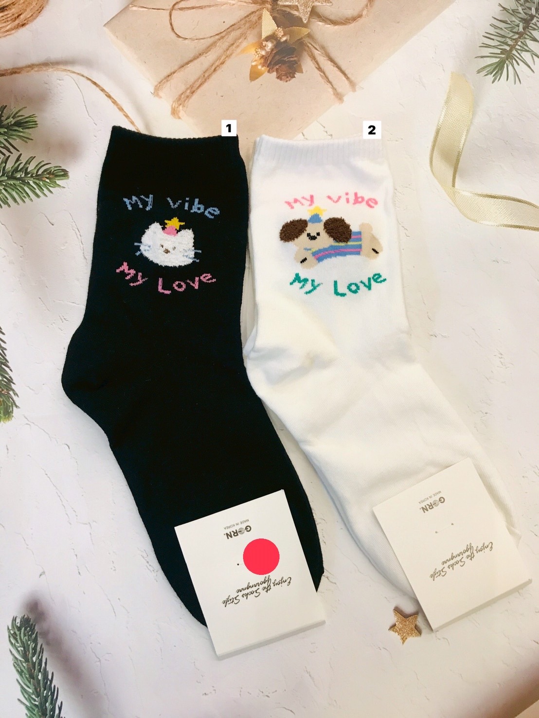 韓國製造~生日帽貓狗 二分之一襪