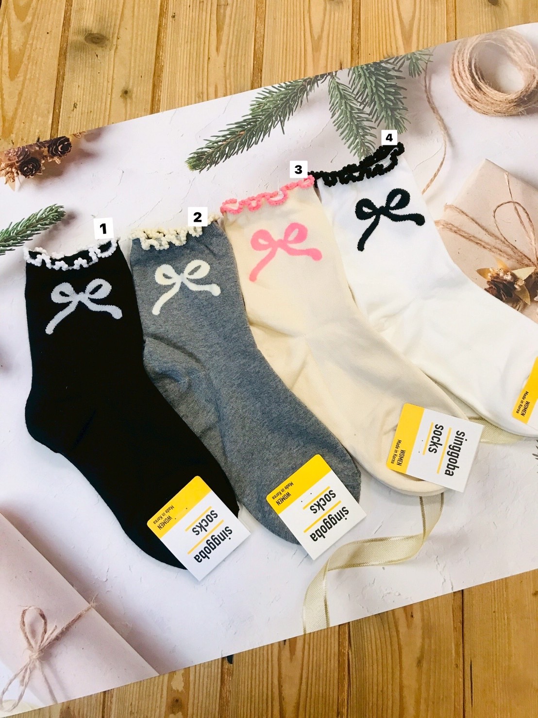 韓國製造~木耳邊蝴蝶結 二分之一襪