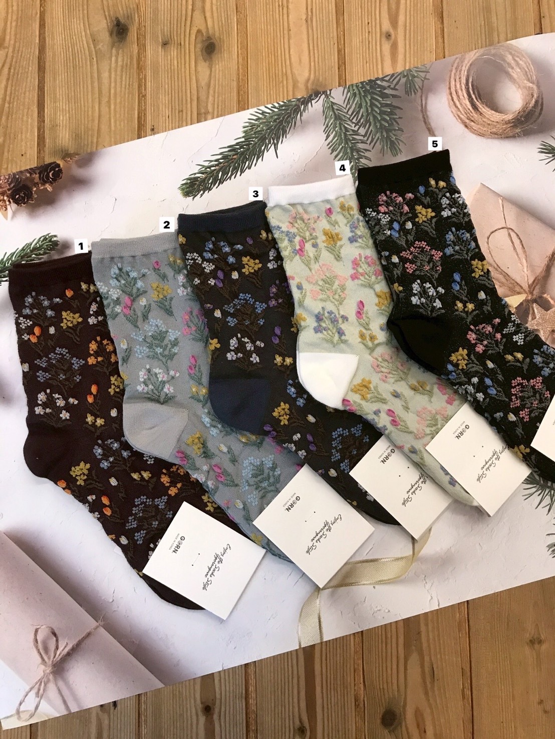韓國製造~田園風立體浮雕小花 二分之一襪