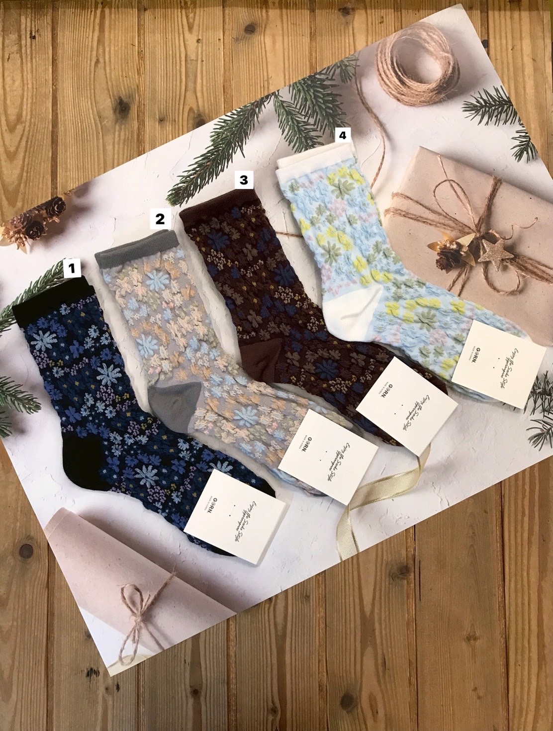 韓國製造~田園風立體浮雕小碎花 二分之一襪