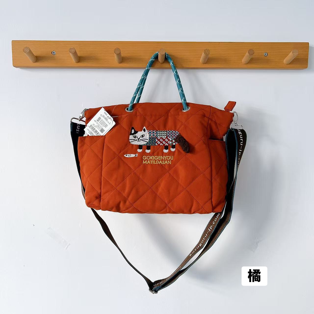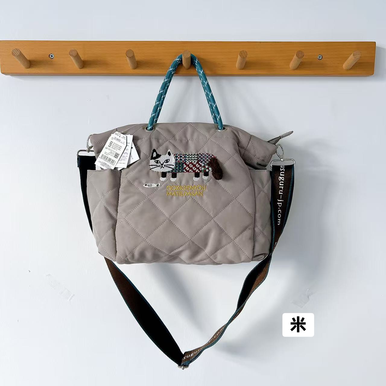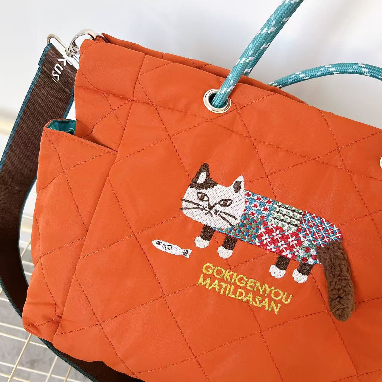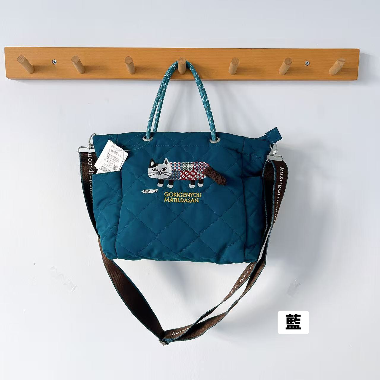 【爪襪島】日本KUSUGURU 眼鏡貓刺繡爬貓雙肩包絎縫2用手提斜背包