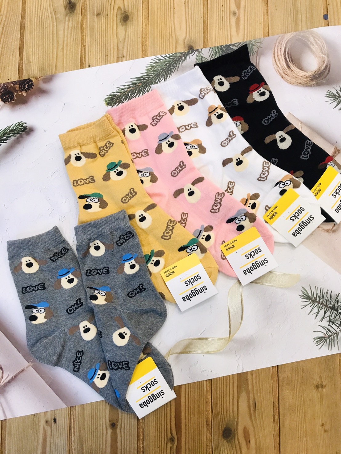 韓國製造~滿版可愛小狗 二分之一襪