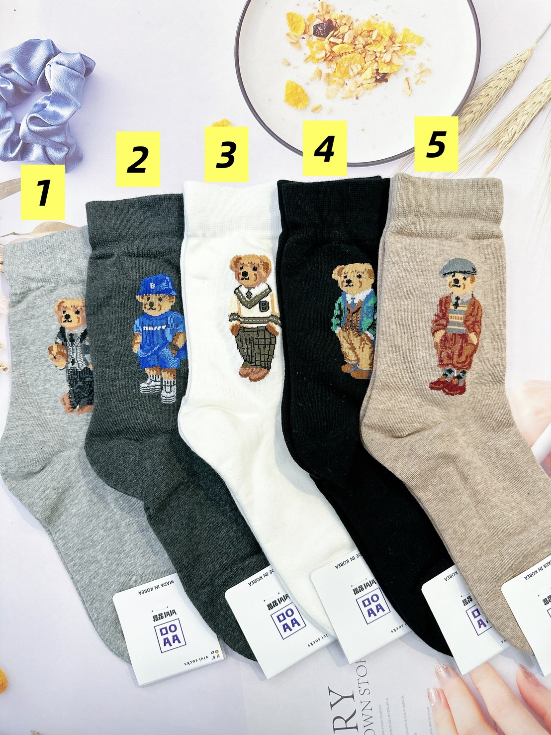 韓國製造~毛絨大動物頭小花 二分之一襪