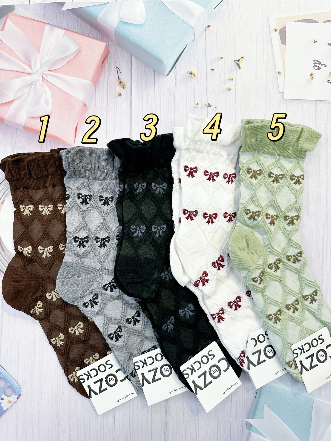 韓國製造~飄帶蝴蝶結 短襪