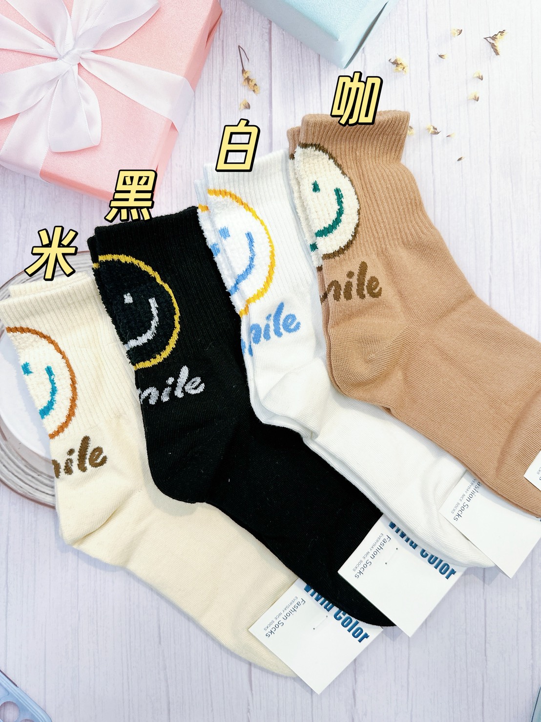 韓國製造~彩色隱形笑臉 二分之一襪
