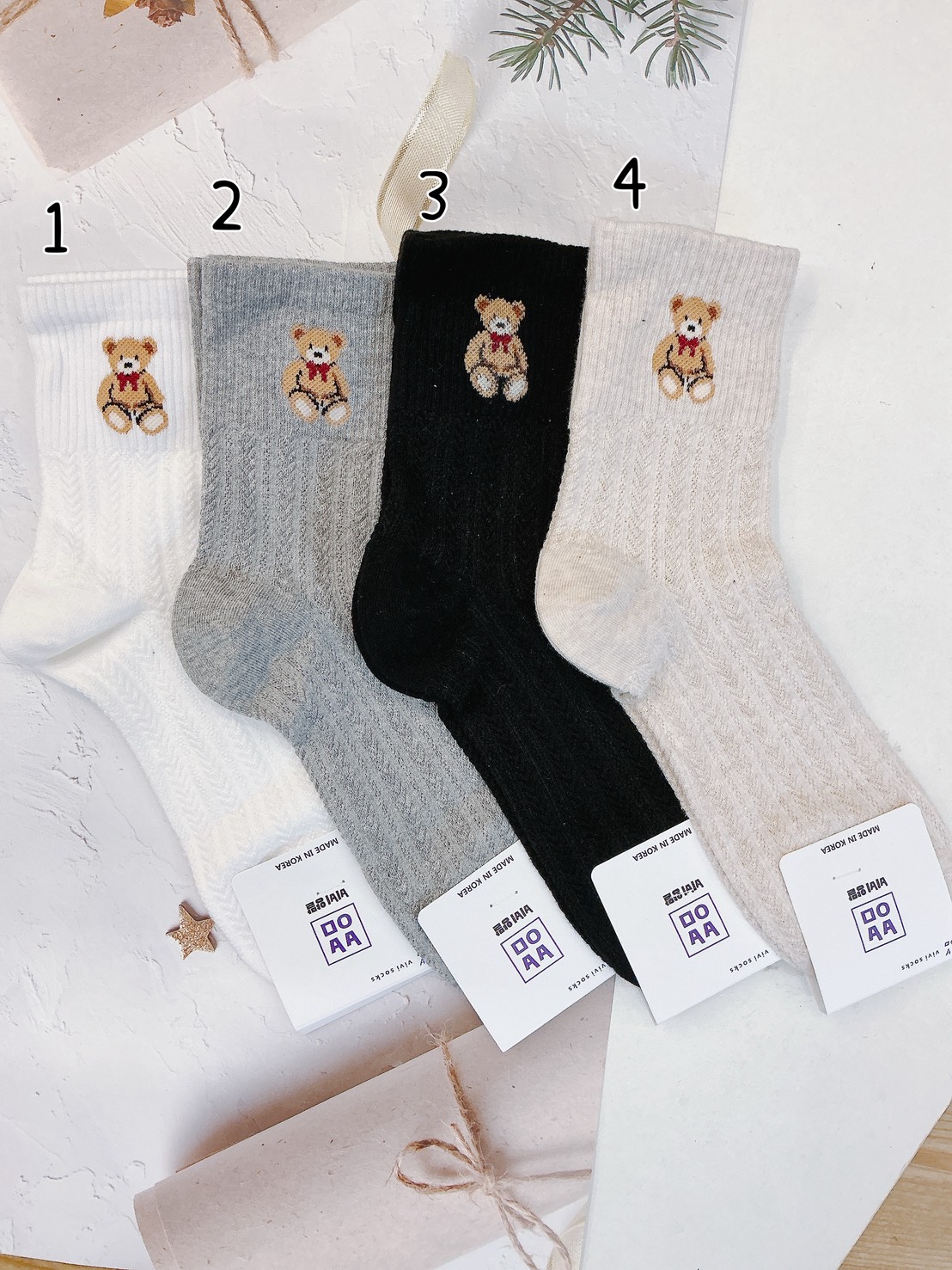 韓國製造~坐坐小熊 二分之一襪