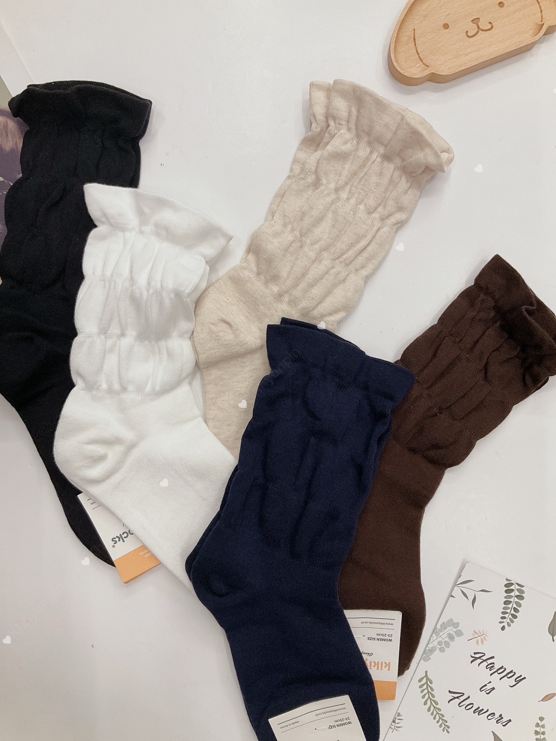韓國製造~造型裙邊皺摺不束腳 二分之一襪